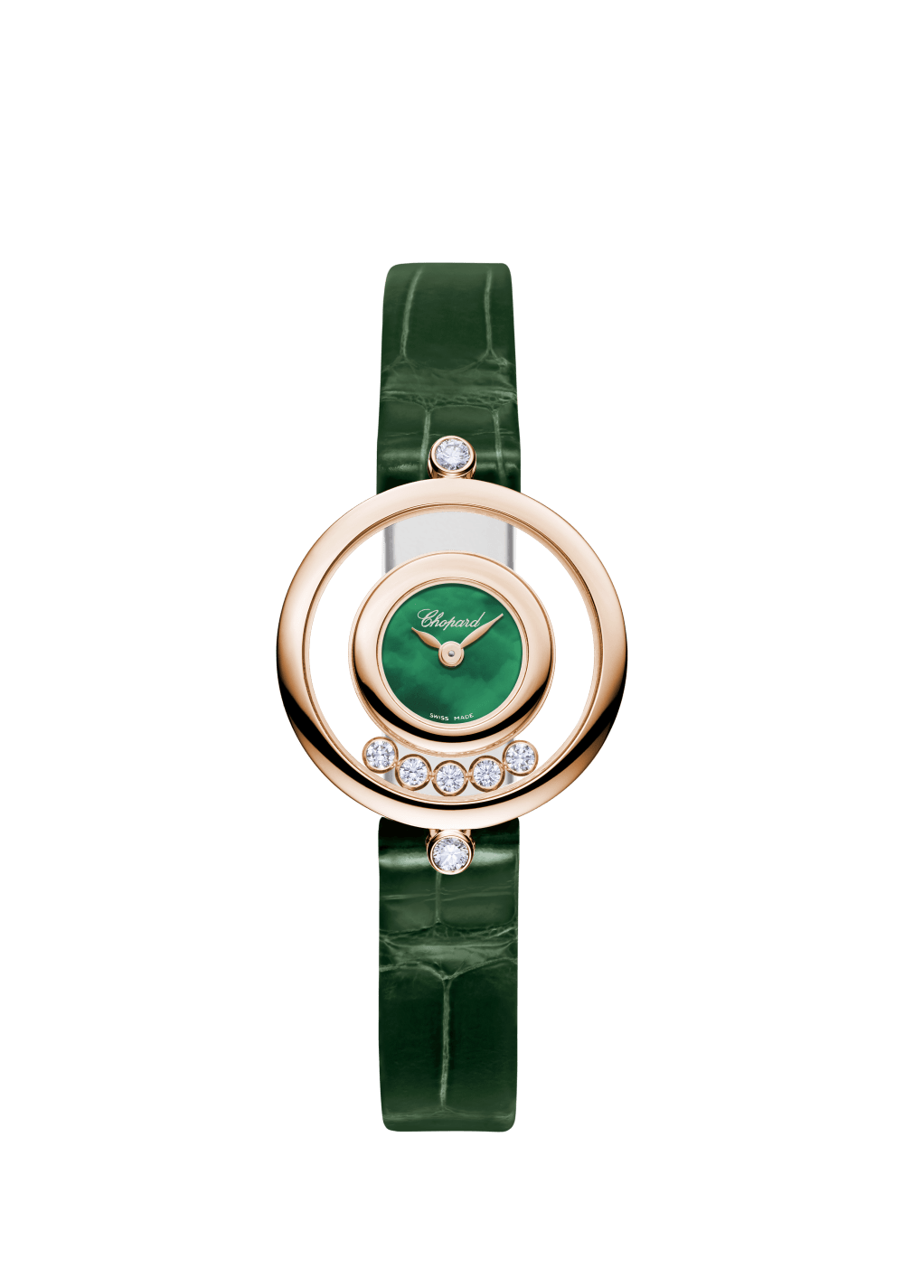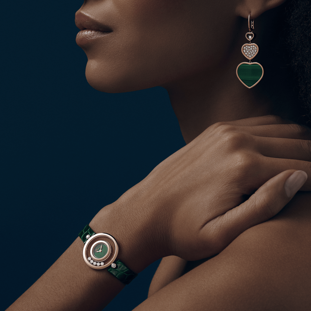 Since 1976 and the invention of the first Happy Diamonds watch, dancing diamonds have been merrily lighting up the collection. Most of all, Happy Diamonds watches assert a playful, airy spirit of independence which lends itself to infinite metamorphoses. Whirling within the absolute transparency of two sapphire crystals, Happy Diamonds give the impression that the diamonds are in direct contact with the skin. The famous timepiece is now treated to new long, supple leather straps which wrap themselves twice around the wrist, enhancing the mesmerising presence of this wristwatch exuding its joyful charm. Little Diamonds Do Great Things