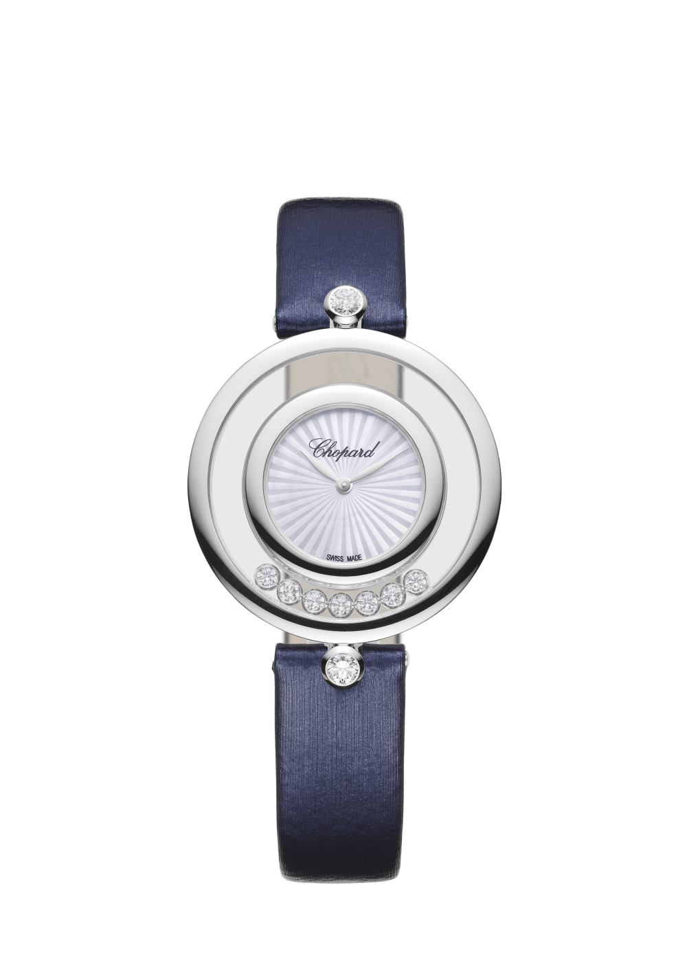 Since 1976 and the invention of the first Happy Diamonds watch, dancing diamonds have been merrily lighting up the collection. Most of all, Happy Diamonds watches assert a playful, airy spirit of independence which lends itself to infinite metamorphoses. Whirling within the absolute transparency of two sapphire crystals, Happy Diamonds give the impression that the diamonds are in direct contact with the skin. Making diamonds dance on the wrist is an utterly elegant expression of mischief… Little Diamonds Do Great Things