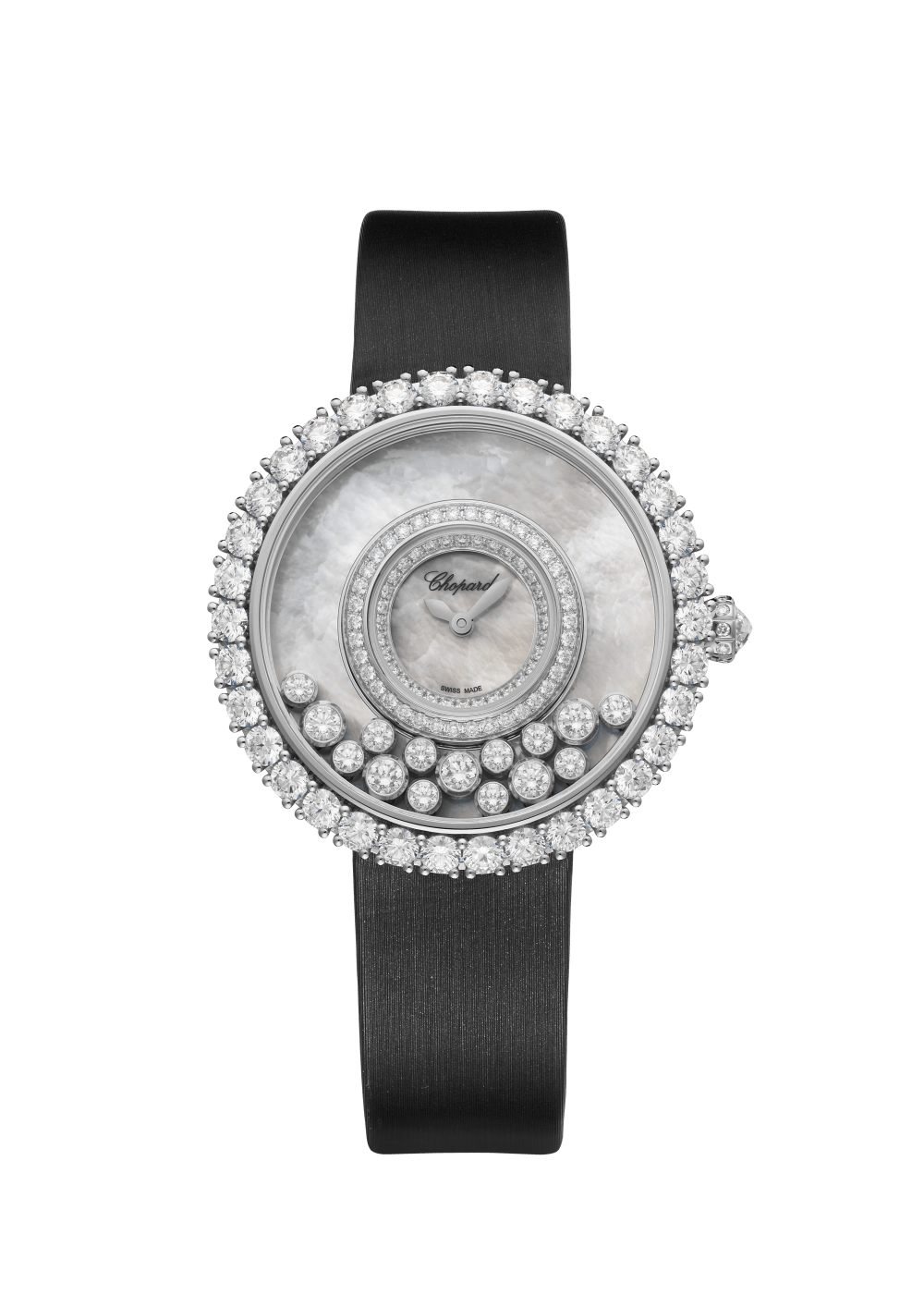 Since 1976 and the invention of the first Happy Diamonds watch, dancing diamonds have been merrily lighting up the collection. Most of all, Happy Diamonds watches assert a playful, airy spirit of independence which lends itself to infinite metamorphoses. Whirling between two sapphire crystals, Happy Diamonds dance around the dial in an utterly elegant expression of mischief. Little Diamonds Do Great Things