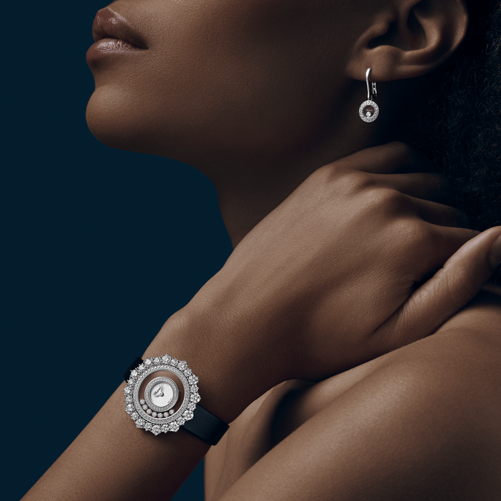 Since 1976 and the invention of the first Happy Diamonds watch, dancing diamonds have been merrily lighting up the collection. Most of all, Happy Diamonds watches assert a playful, airy spirit of independence which lends itself to infinite metamorphoses. Whirling within the absolute transparency of two sapphire crystals, Happy Diamonds give the impression that the diamonds are in direct contact with the skin. Making diamonds dance on the wrist is an utterly elegant expression of mischief… Little Diamonds Do Great Things