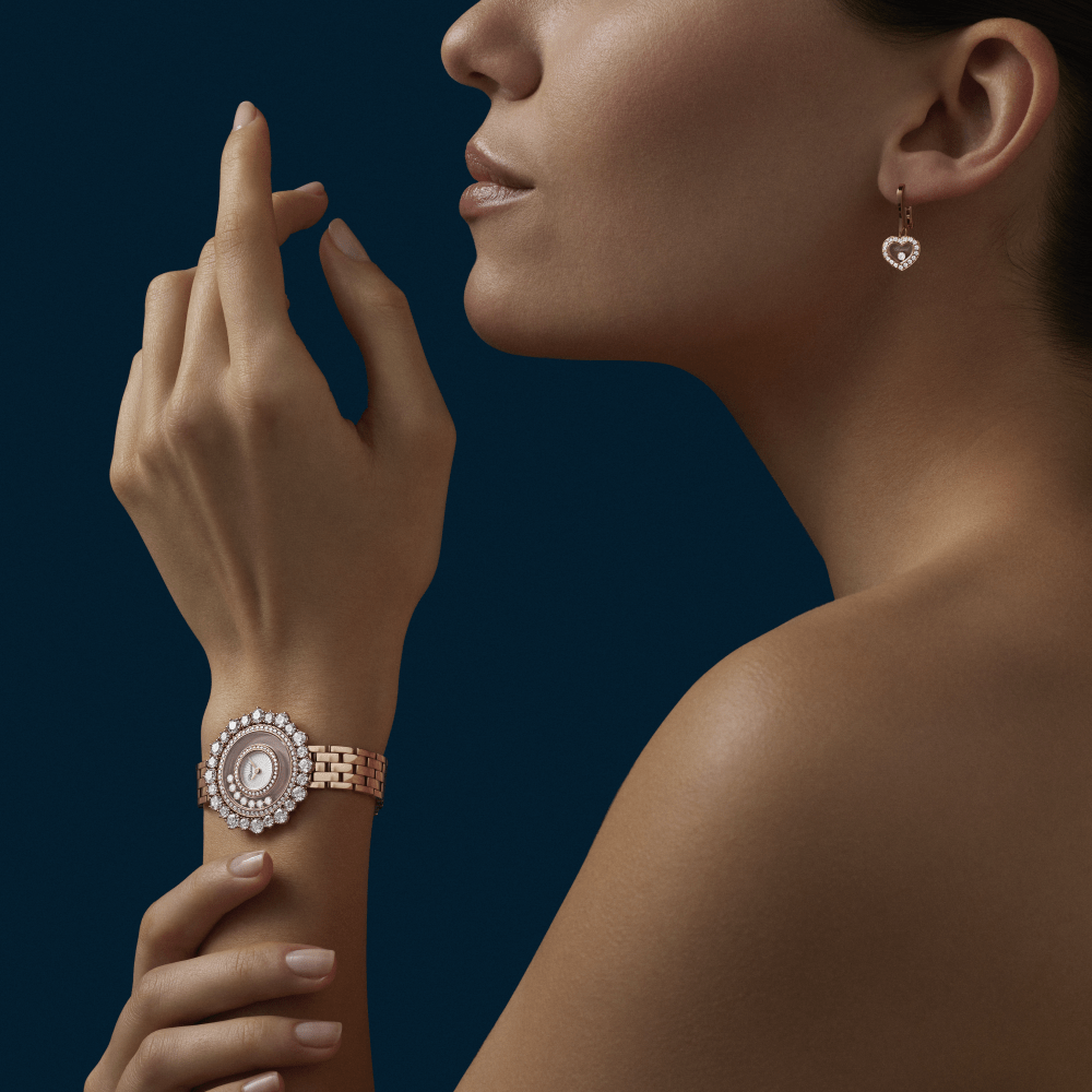 Since 1976 and the invention of the first Happy Diamonds watch, dancing diamonds have been merrily lighting up luxury watch collections. Happy Diamonds watches feature first and foremost a playful, airy spirit of independence which lends itself to infinite metamorphoses. Whirling within the absolute transparency of two sapphire crystals, the Happy Diamonds watch collection gives the impression that diamonds are in direct contact with the skin. Dancing diamonds on the wrist are an utterly elegant expression of mischievousness… Little Diamonds Do Great Things.
