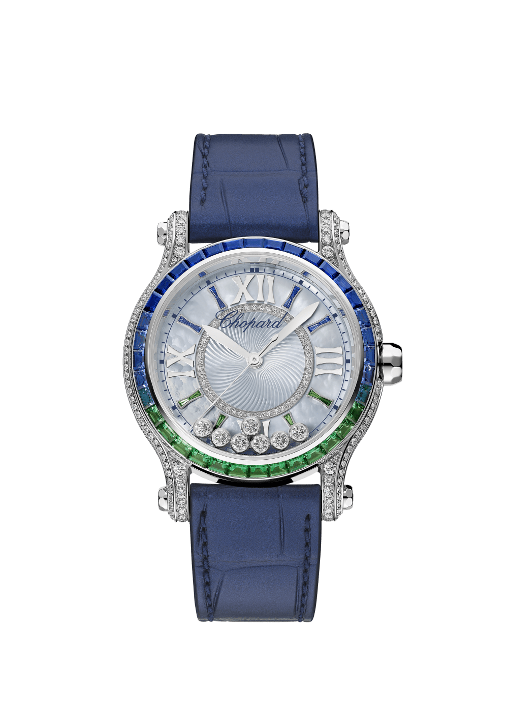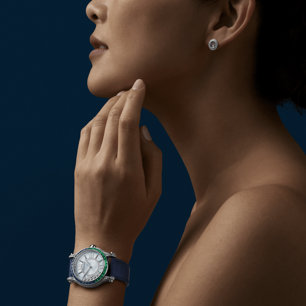 The Happy Sport collection is the emblem of Chopard?s creativity and boldness. Its playful, free-spinning gems, dancing between two sapphire crystals, have captured the imagination since 1993, when Chopard became the first Maison to combine steel and diamonds. Little Diamonds Do Great Things