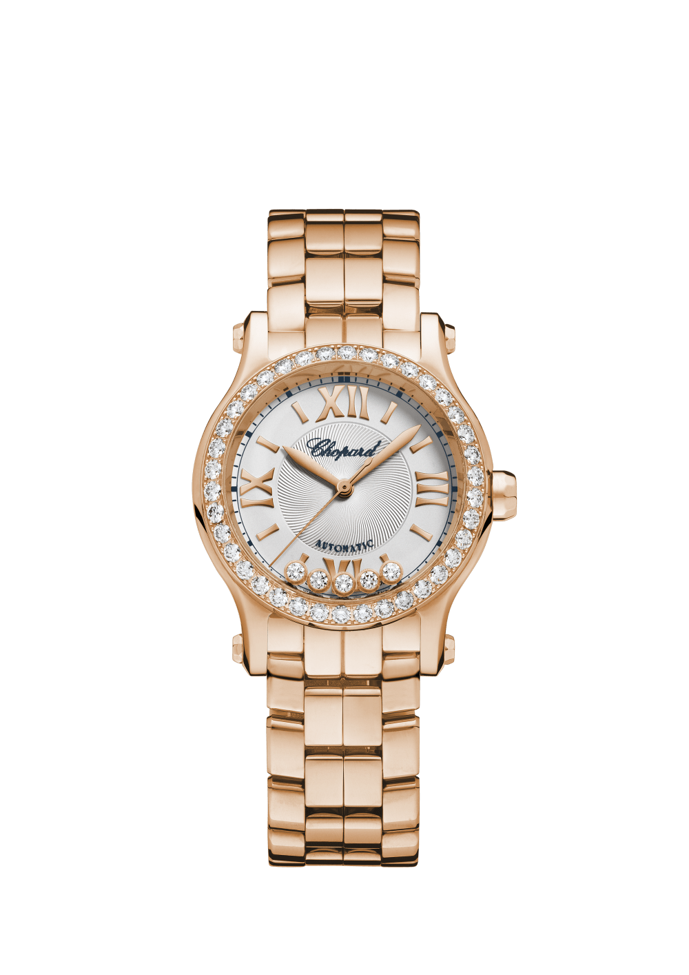 The Happy Sport collection is the emblem of Chopard?s creativity and boldness. Its playful, free-spinning gems, dancing between two sapphire crystals, have captured the imagination since 1993, when Chopard became the first Maison to combine steel and diamonds. Its watchmaking expertise has enabled Chopard to equip the Happy Sport 30 mm with a mechanical movement featuring an automatic winding mechanism specially developed for feminine cases. Little Diamonds Do Great Things