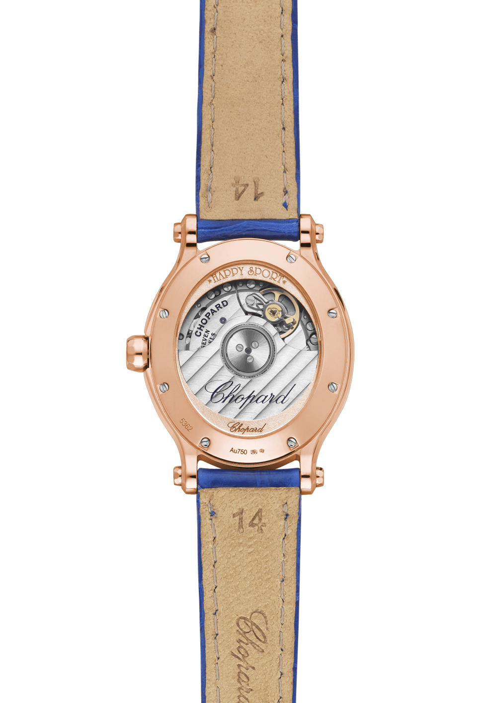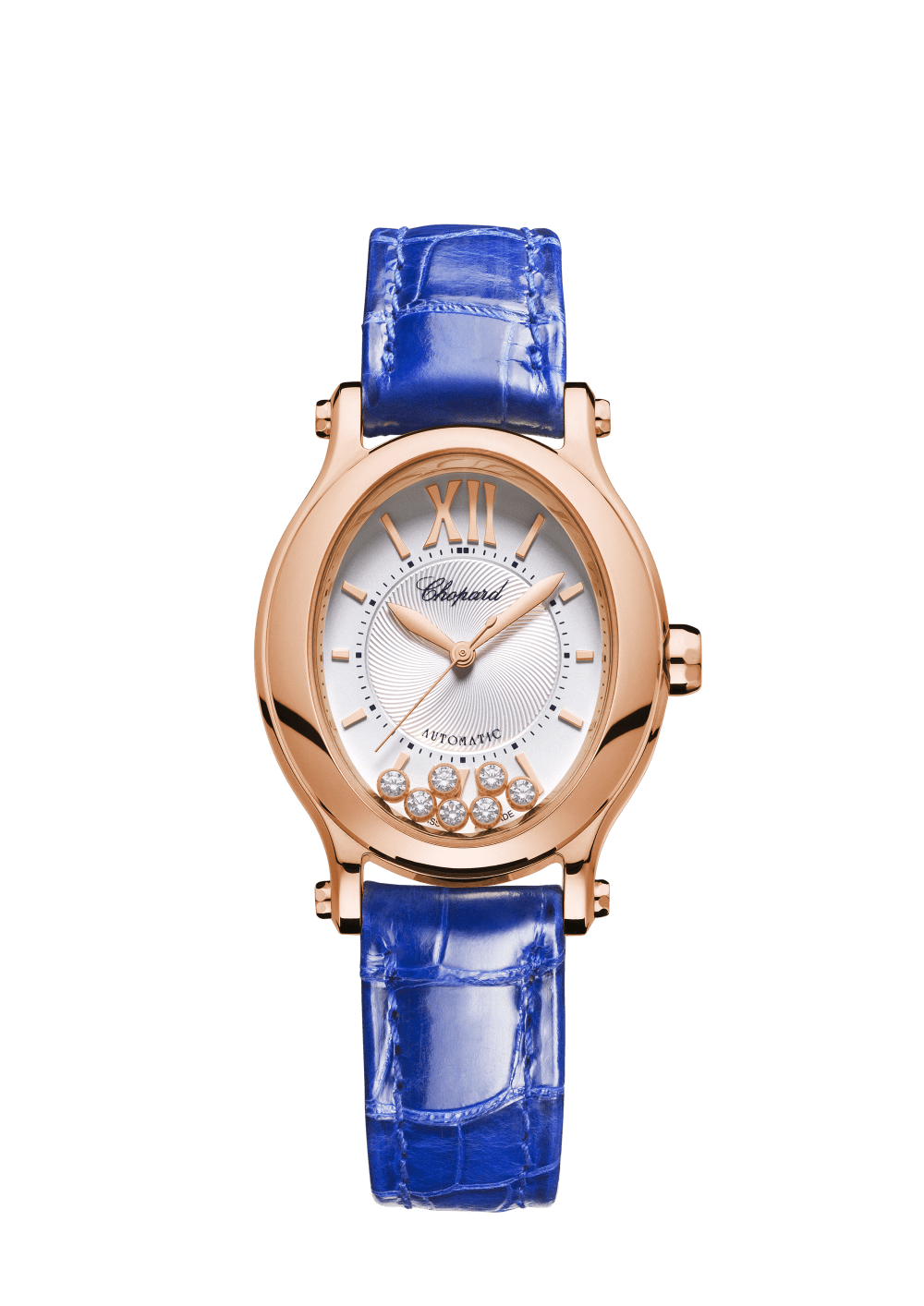 The Happy Sport collection is the emblem of Chopard?s creativity and boldness. Its playful, free-spinning gems, dancing between two sapphire crystals, have captured the imagination since 1993, when Chopard became the first Maison to combine steel and diamonds. Its watchmaking expertise has enabled Chopard to equip the Happy Sport Oval with a mechanical movement featuring an automatic winding mechanism specially developed for feminine cases. Little Diamonds Do Great Things