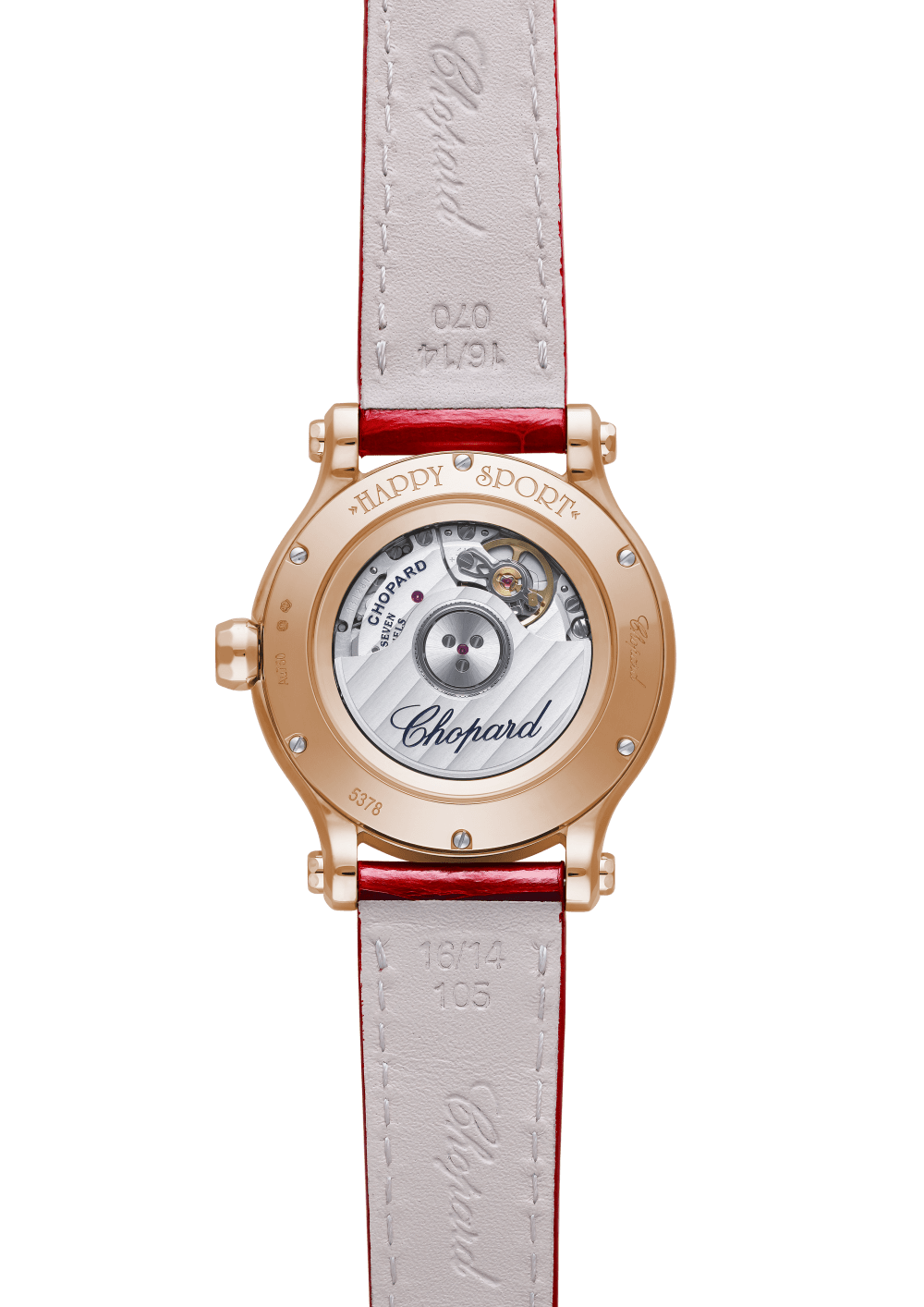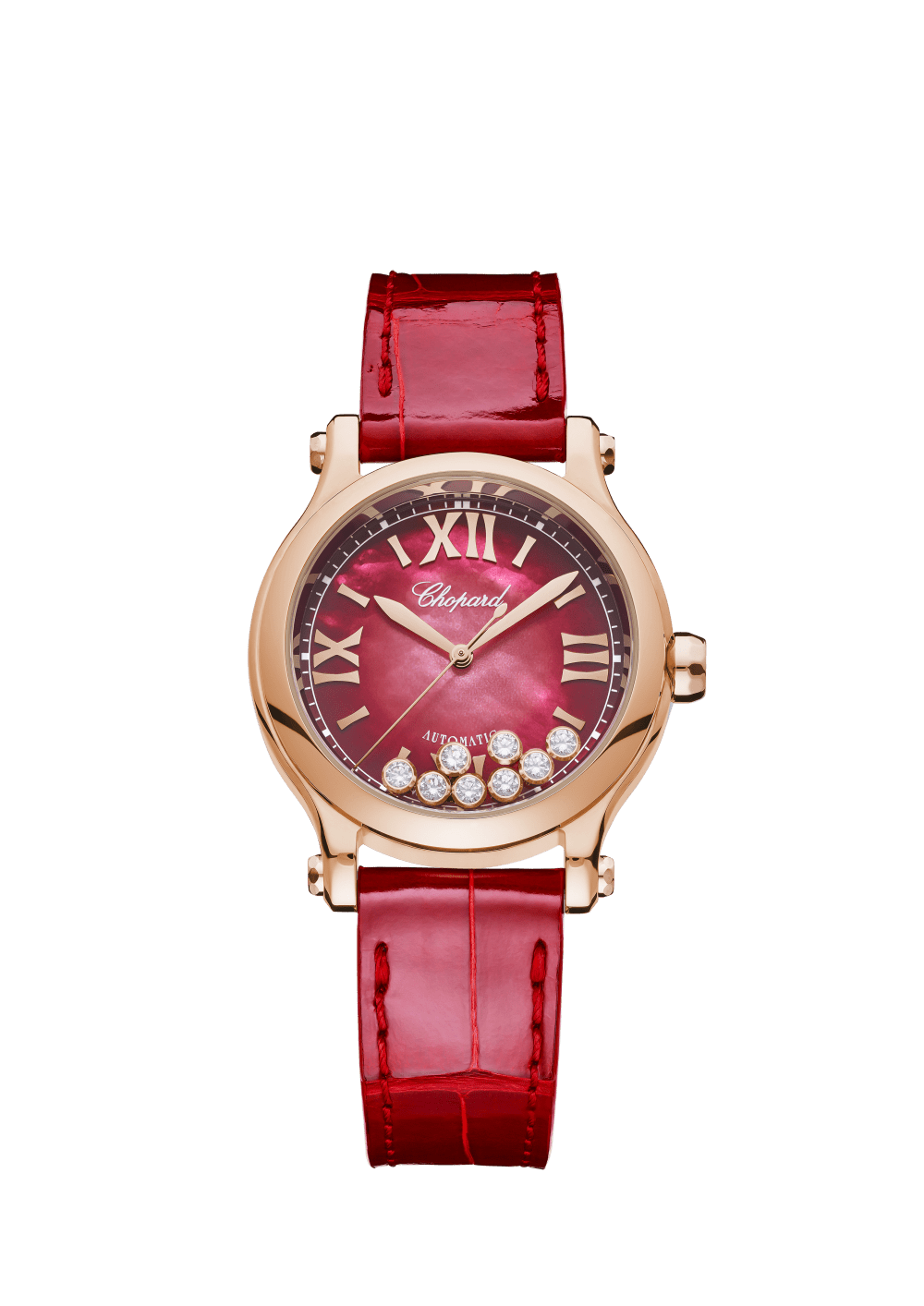 The Happy Sport collection is the emblem of Chopard?s creativity and boldness. Its playful, free-spinning gems, dancing between two sapphire crystals, have captured the imagination since 1993, when Chopard became the first Maison to combine steel and diamonds. Its watchmaking expertise has enabled Chopard to equip the Happy Sport 33 mm with a mechanical movement featuring an automatic winding mechanism specially developed for feminine cases. Little Diamonds Do Great Things