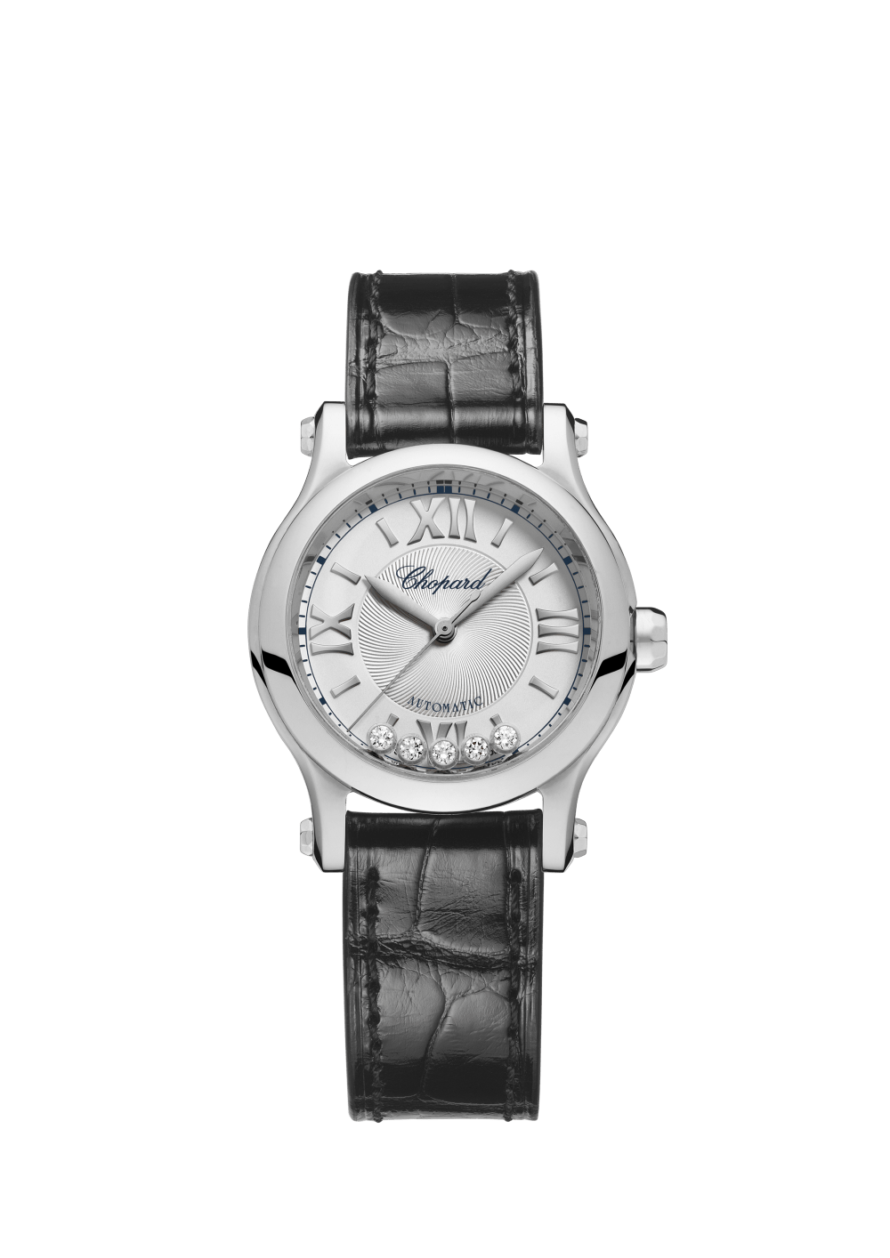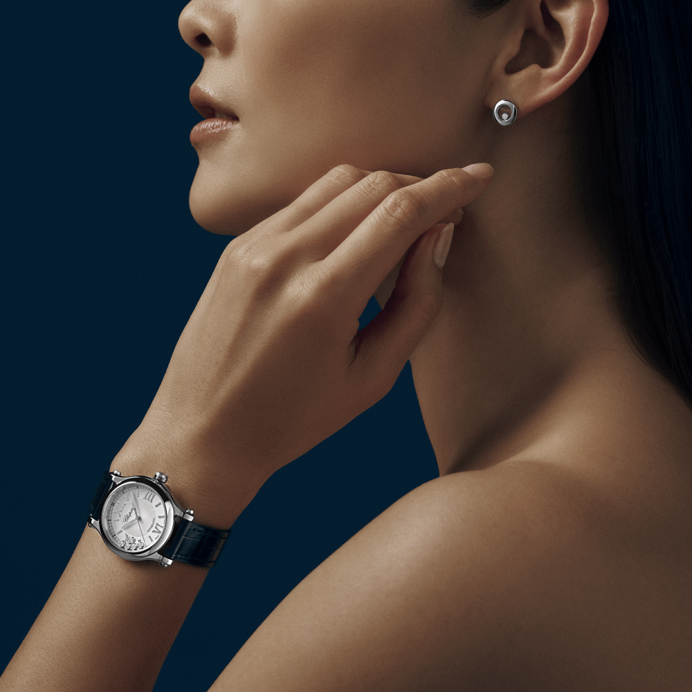 The Happy Sport collection is the emblem of Chopard?s creativity and boldness. Its playful, free-spinning gems, dancing between two sapphire crystals, have captured the imagination since 1993, when Chopard became the first Maison to combine steel and diamonds. Its watchmaking expertise has enabled Chopard to equip the Happy Sport 30 mm with a mechanical movement featuring an automatic winding mechanism specially developed for feminine cases. Little Diamonds Do Great Things