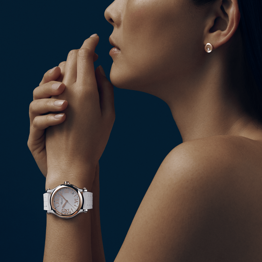 The Happy Sport collection is the emblem of Chopard?s creativity and boldness. Its playful, free-spinning gems, dancing between two sapphire crystals, have captured the imagination since 1993, when Chopard became the first Maison to combine steel and diamonds. Little Diamonds Do Great Things