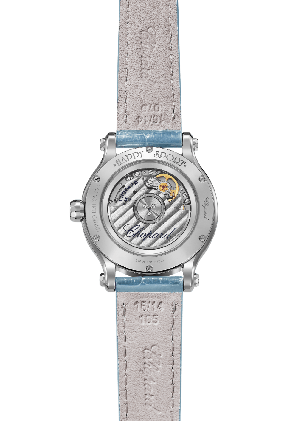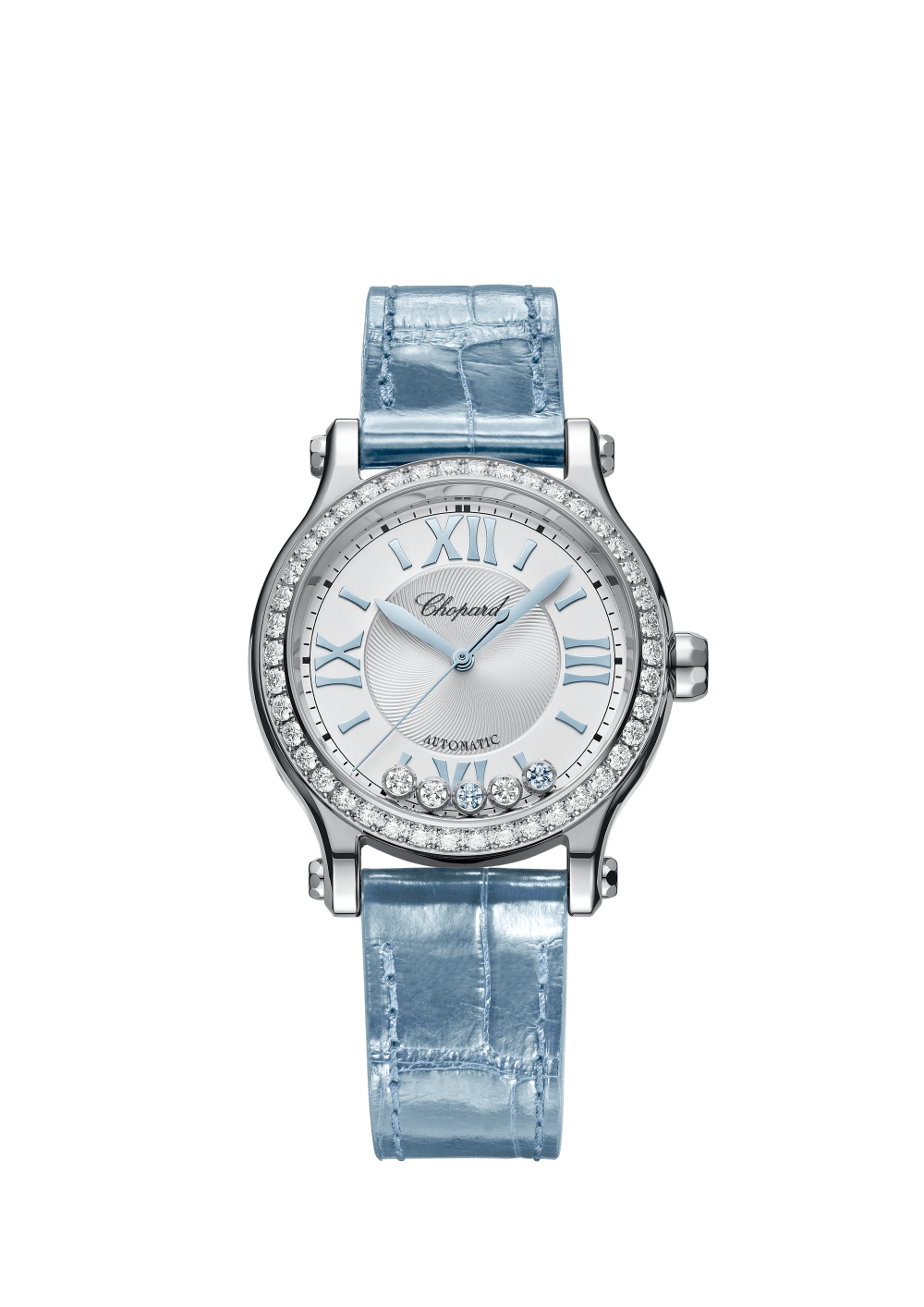 The Happy Sport collection is the emblem of Chopard?s creativity and boldness. Its playful, free-spinning gems, dancing between two sapphire crystals, have captured the imagination since 1993, when Chopard became the first Maison to combine steel and diamonds. Its watchmaking expertise has enabled Chopard to equip the Happy Sport 33 mm with a mechanical movement with automatic winding specially developed for feminine cases. Little Diamonds Do Great Things