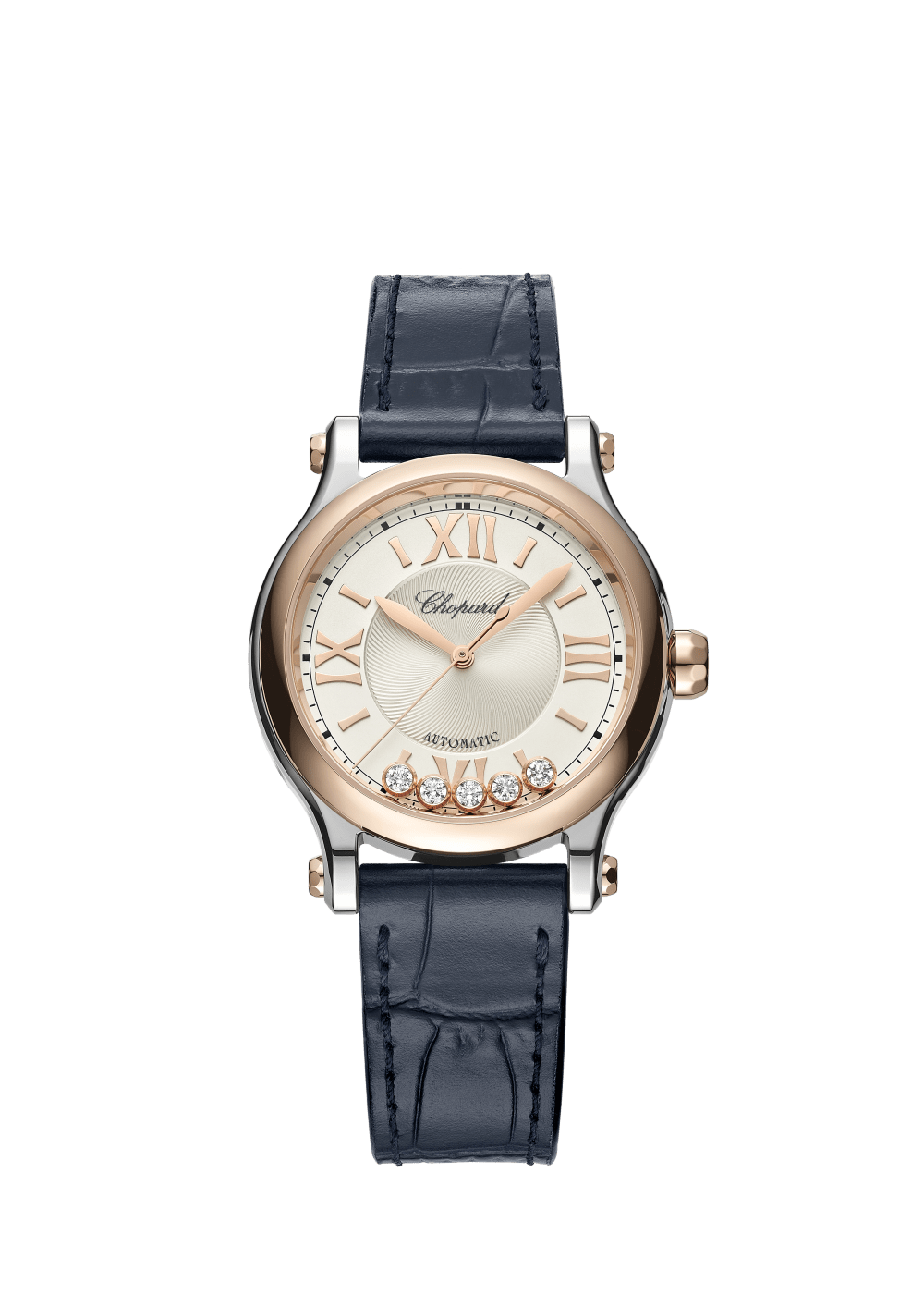 The Happy Sport collection is the emblem of Chopard?s creativity and boldness. Its playful, free-spinning gems, dancing between two sapphire crystals, have captured the imagination since 1993, when Chopard became the first Maison to combine steel and diamonds. Its watchmaking expertise has enabled Chopard to equip the Happy Sport 33 mm with a mechanical movement featuring an automatic winding mechanism specially developed for feminine cases. Little Diamonds Do Great Things