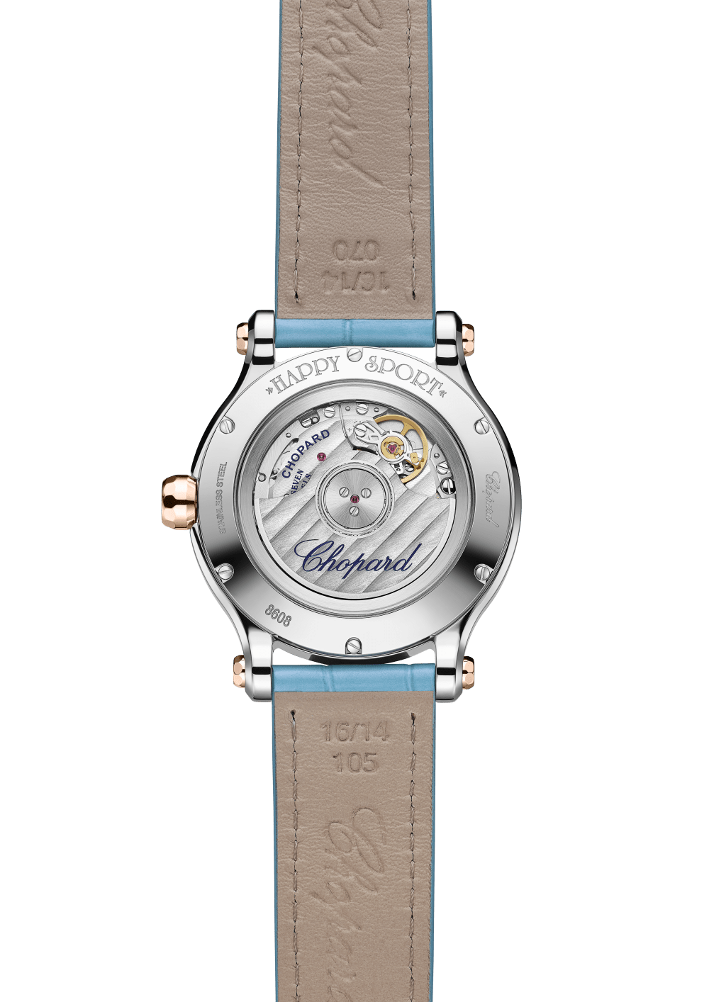 The Happy Sport collection is the emblem of Chopard?s creativity and boldness. Its playful, free-spinning gems, dancing between two sapphire crystals, have captured the imagination since 1993, when Chopard became the first Maison to combine steel and diamonds. Its watchmaking expertise has enabled Chopard to equip the Happy Sport 33 mm with a mechanical movement with automatic winding specially developed for feminine cases. Little Diamonds Do Great Things