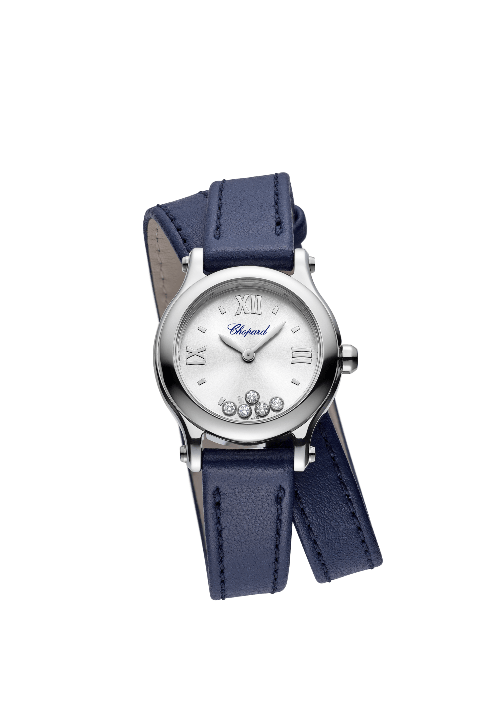 The Happy Sport women’s floating diamond watch collection is the emblem of Chopard?s creativity and boldness. Dancing between two sapphire crystals, its playful, free-spinning diamonds have captured the imagination since 1993, when Chopard became the first Maison to combine steel and diamonds. Little Diamonds Do Great Things.