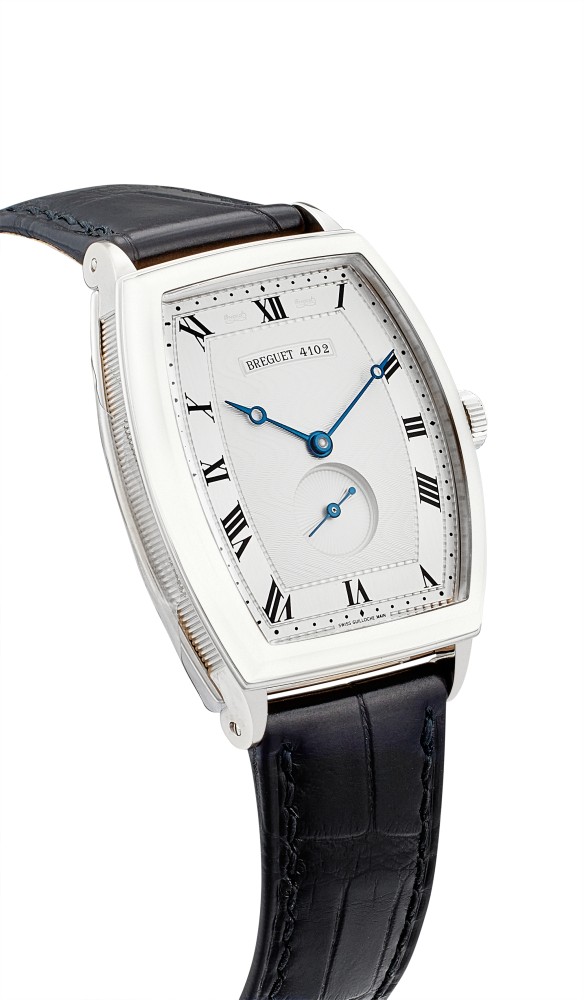 Breguet is a Swiss-French luxury watch, clock and jewelry manufacturer founded by Abraham-Louis Breguet in Paris in 1775. Since 1999, it has been a subsidiary of the Swiss Swatch Group. The tonneau-shaped H?ritage represents a technical and aesthetic achievement in the great Breguet tradition. The case is cambered and the formidable task of hand-engraving the curved surface of the dial, with its delicate “guilloche” decoration, represents a triumph of artistry and skill.