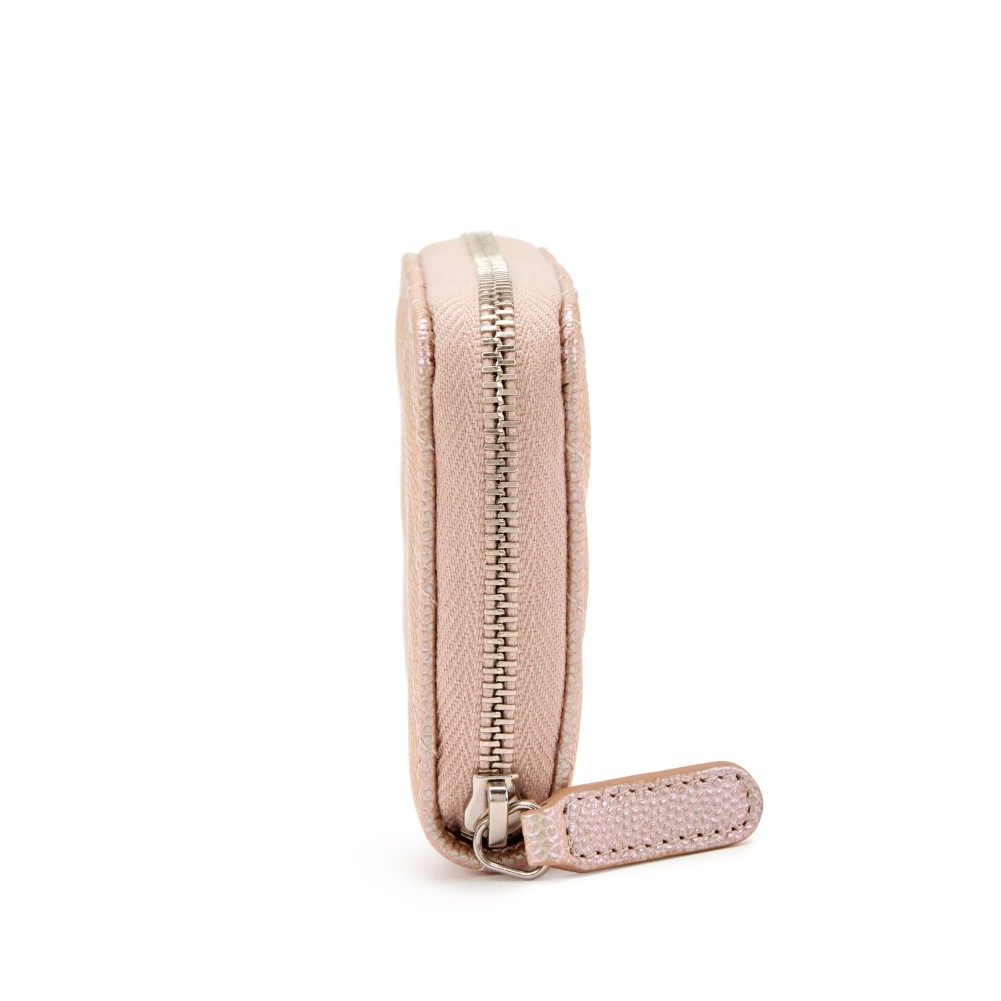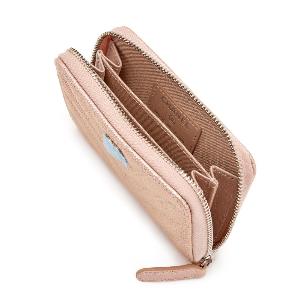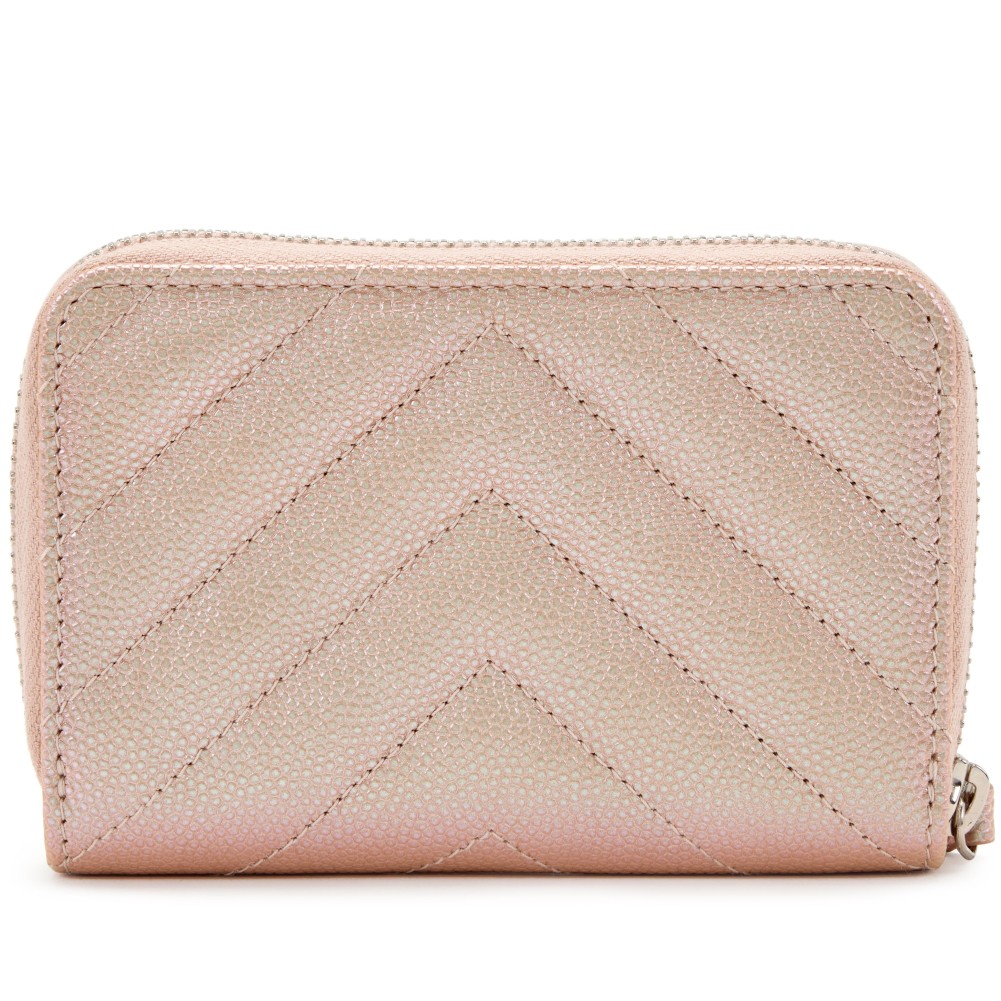 Chanel Iridescent Light Pink Chevron Quilted Caviar Zip Around Coin Purse Silver Hardware, 2017