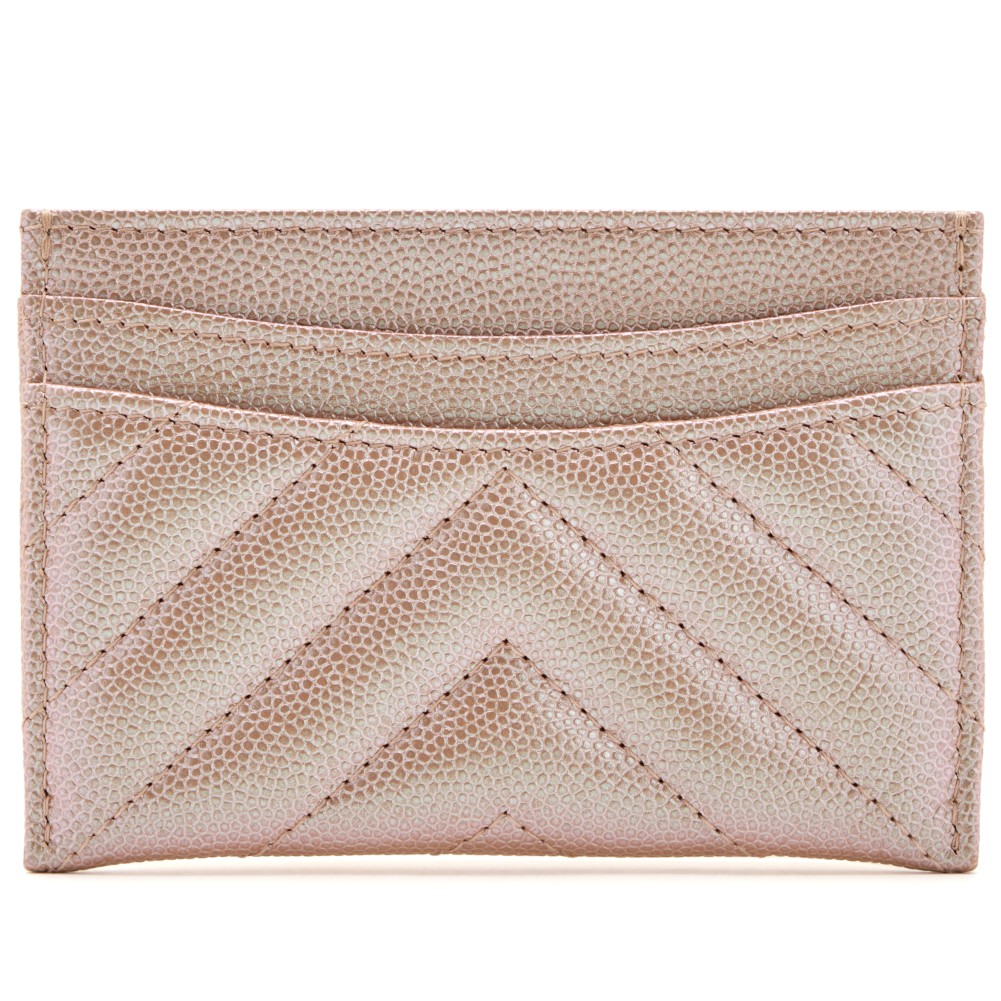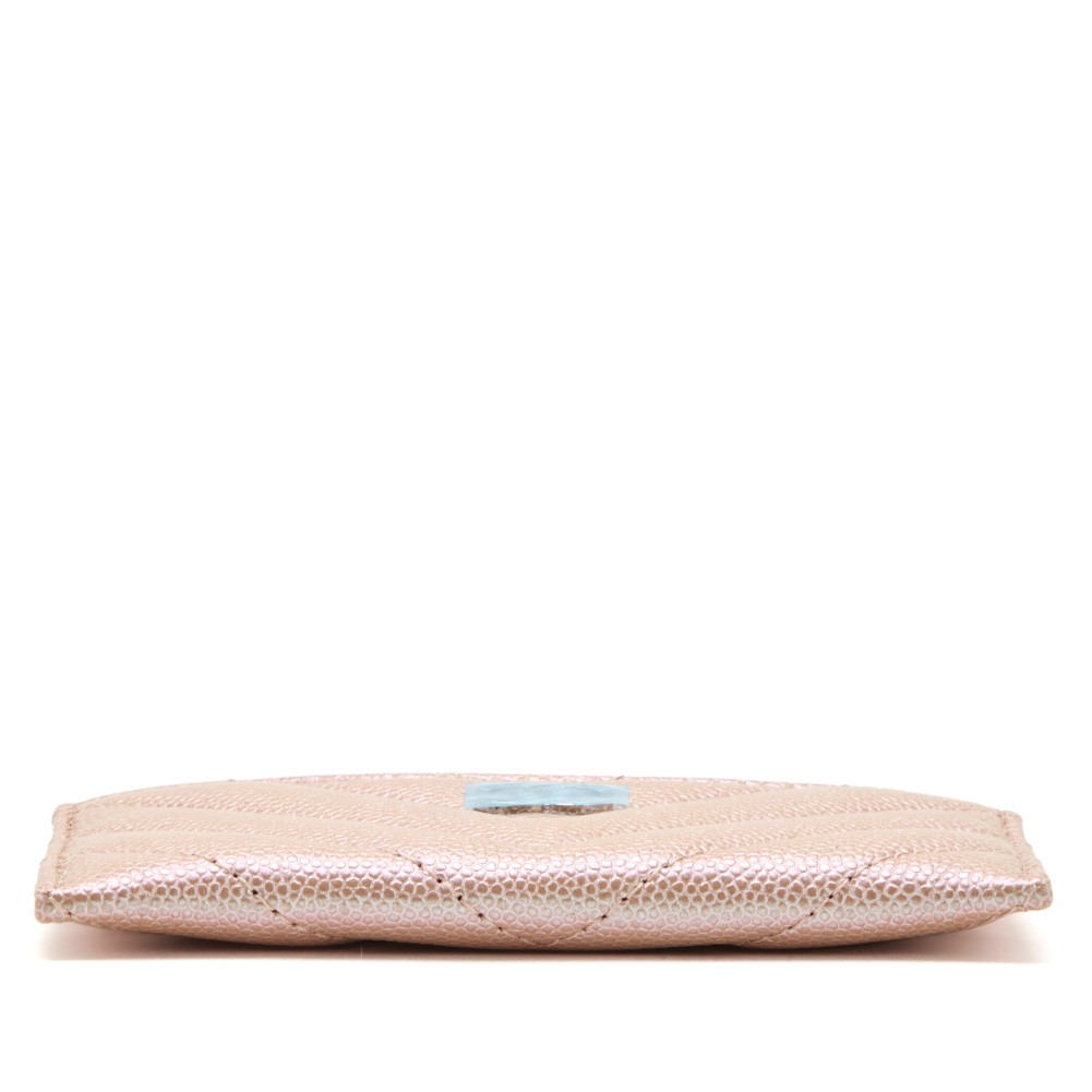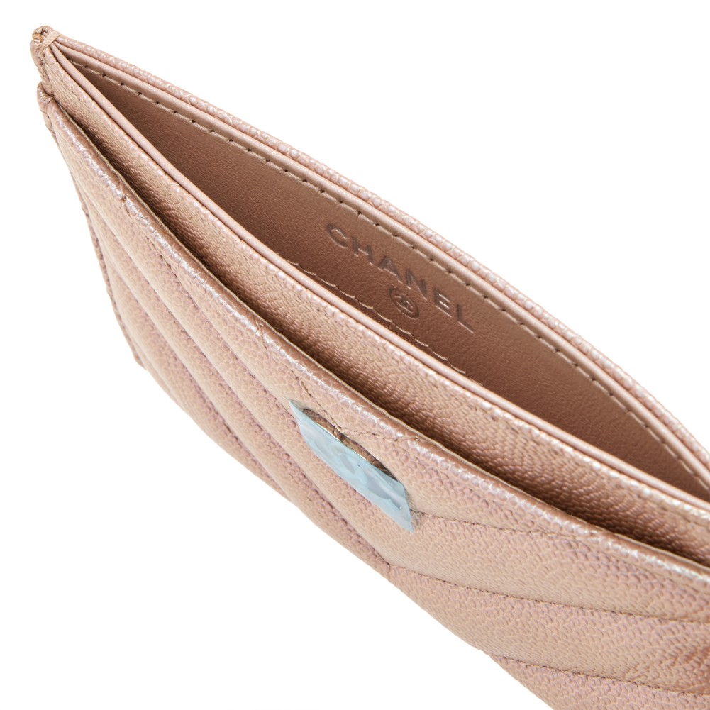 Chanel Iridescent Rose Gold Chevron Quilted Caviar Card Holder Silver Hardware, 2017