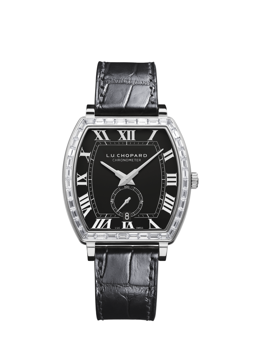 Taking up the challenge of developing a barrel-shaped movement without making any technical compromises, the Maison Chopard created the L.U.C Heritage Grand Cru adorned with 2.90 carats of baguette-cut diamonds. Ultra-thin and gracefully curved this elegant timepiece features an automatic movement with the in-house developed 97.01-L calibre and a 22-carat gold micro-rotor.