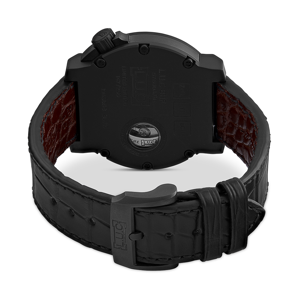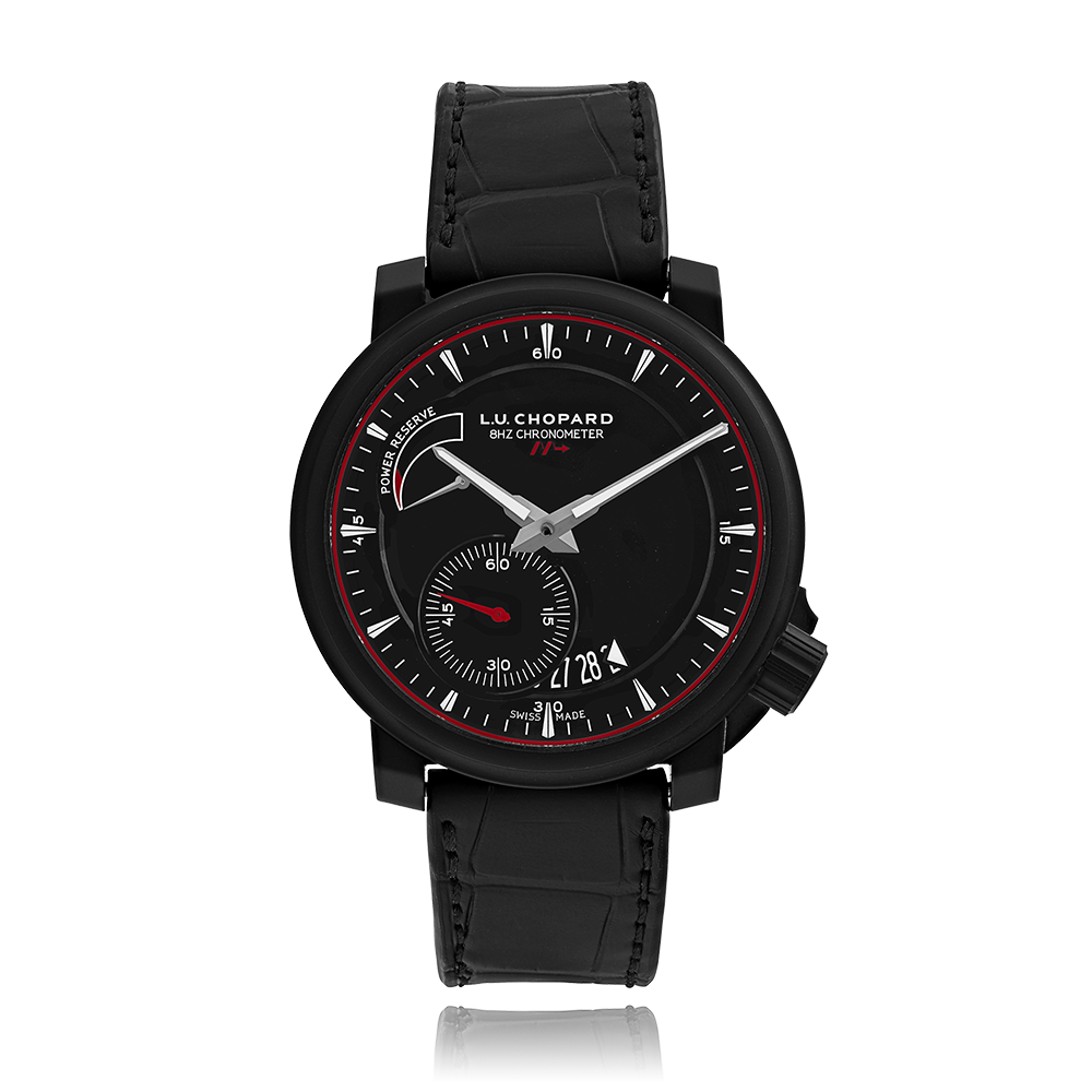 Chopard L.U.C. with a 42 mm ceramic case and a sapphire glass, water resistant; inside is the automatic calibre , power reserve as additional function a black index face with date indication, the bracelet is a alligator leather; accessory: sales guarantee (original), sales box (original).