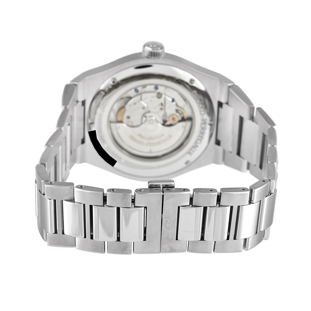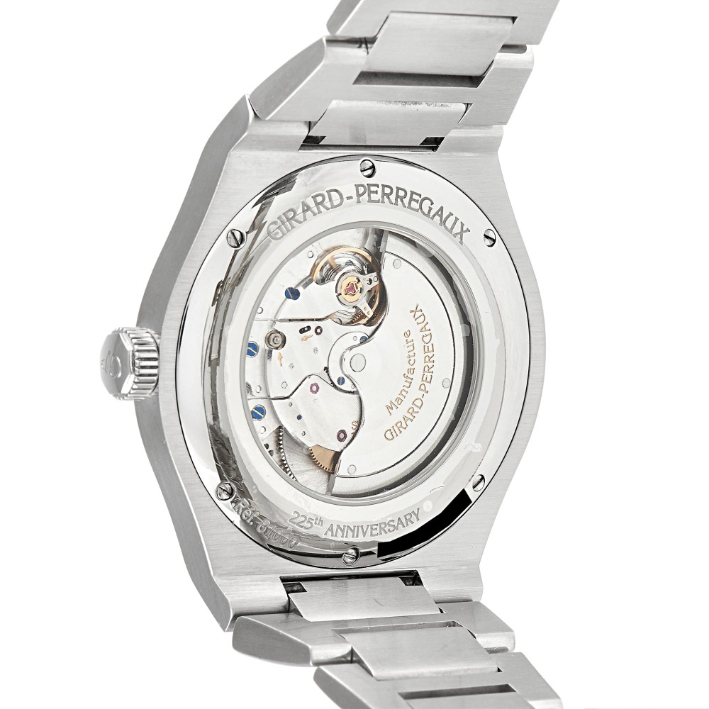 This is a 2016 limited-edition timepiece released in celebration of Girard-Perregaux’s 225th anniversary. The Laureato Heritage Automatic Watch 81000-11-131-11a features a 41mm stainless steel case and matching octagonal steel bezel and steel bracelet. The silver dial bears a fine hobnail guilloche pattern with a flat silver dial flange. Also on the dial are applied luminous hour markers and hands, and a date window at the 3 o’clock position. Beating inside is caliber GP03300-0030, a 218-part movement with 27 jewels and 46 hours of power reserve. This watch model is limited to 225 pieces.