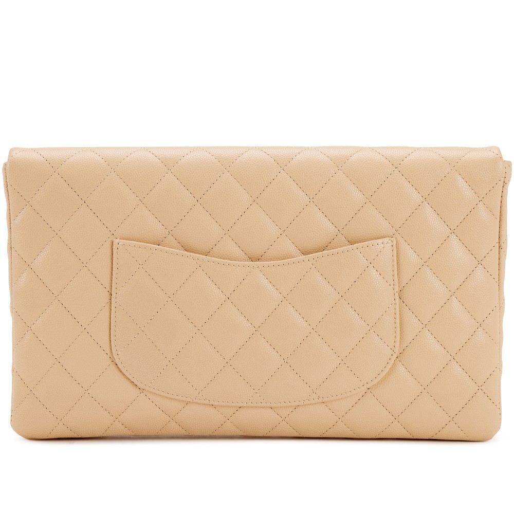 Chanel Light Beige Clair Quilted Caviar Classic Clutch Gold Hardware, 2019