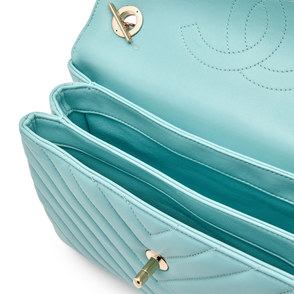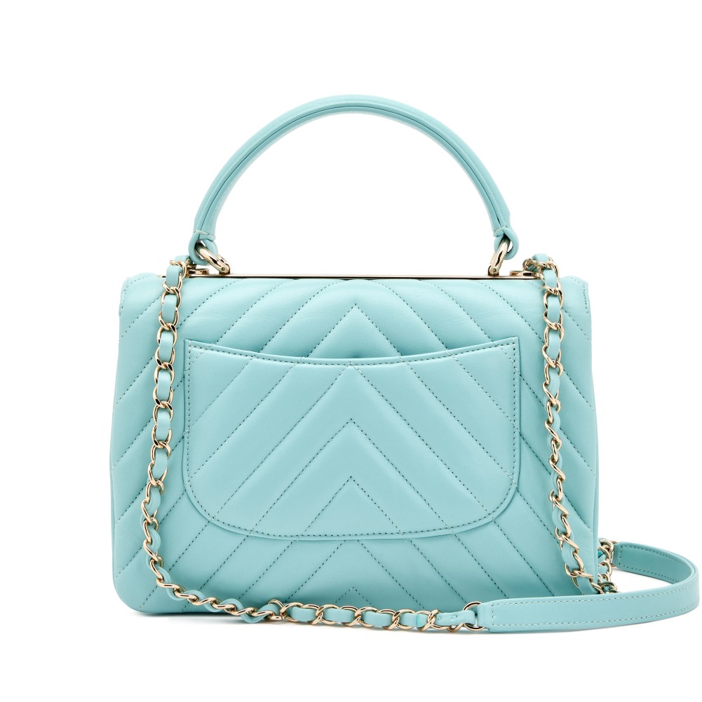 Chanel Light Blue Chevron Trendy CC Top Handle Bag Gold Hardware, 2019