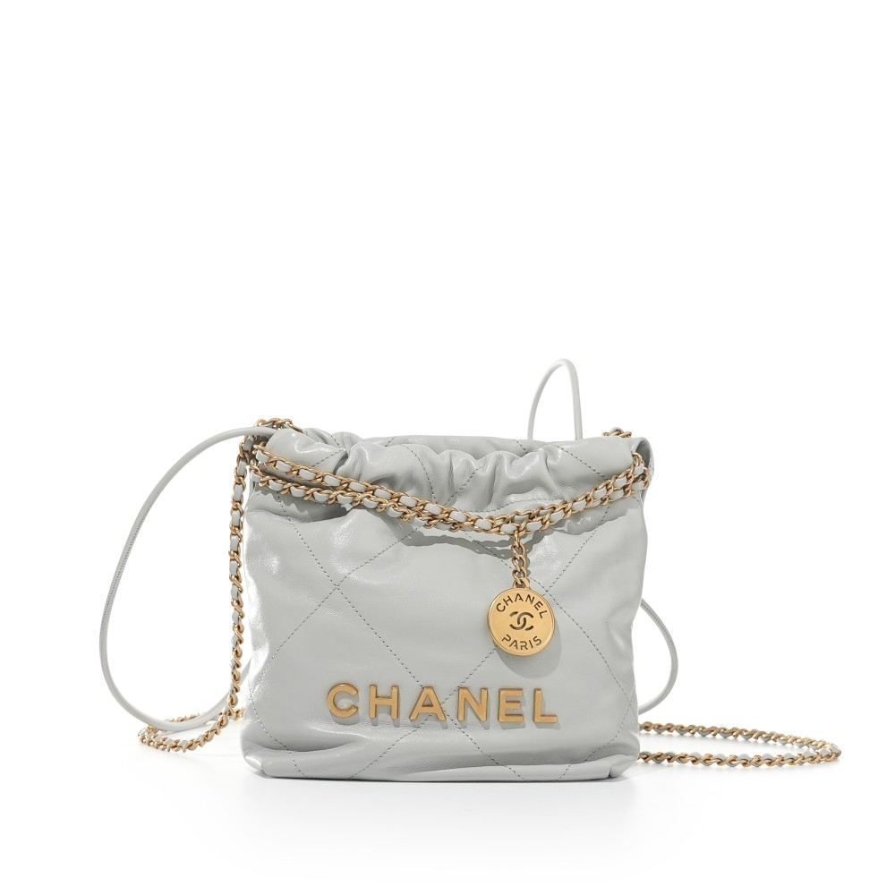 Chanel Light Blue Quilted Calfskin Mini 22 Bag Gold Hardware, 2023