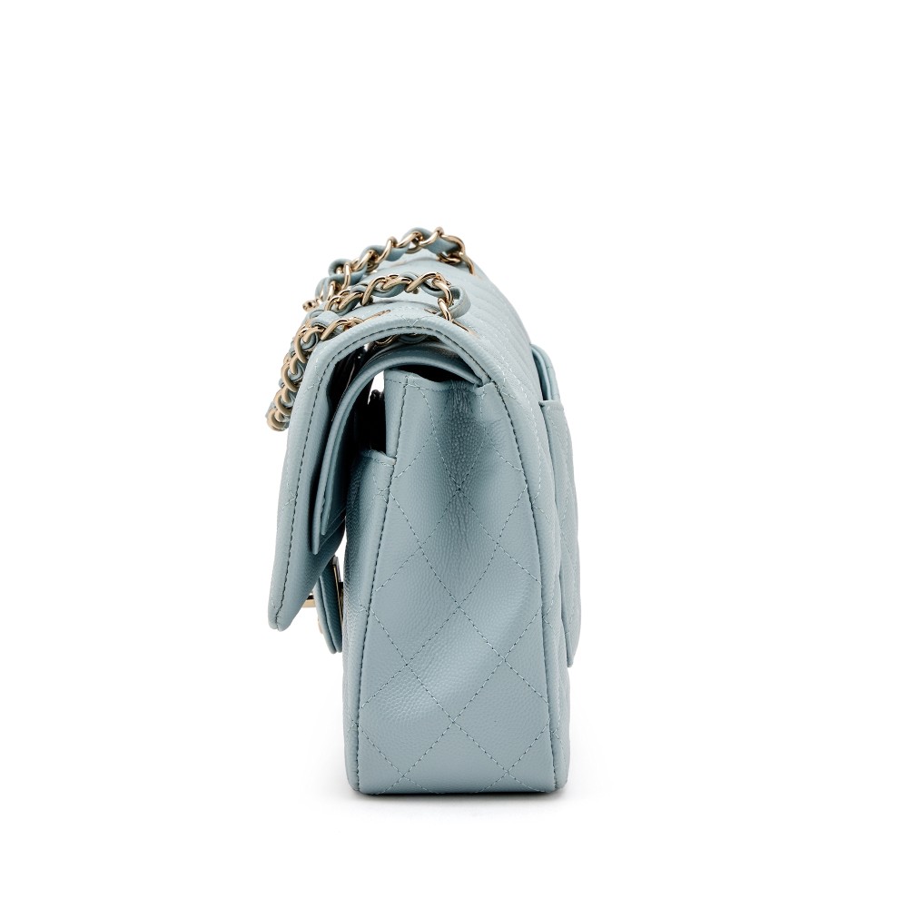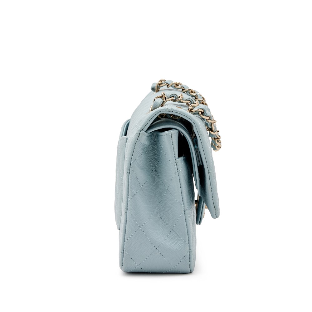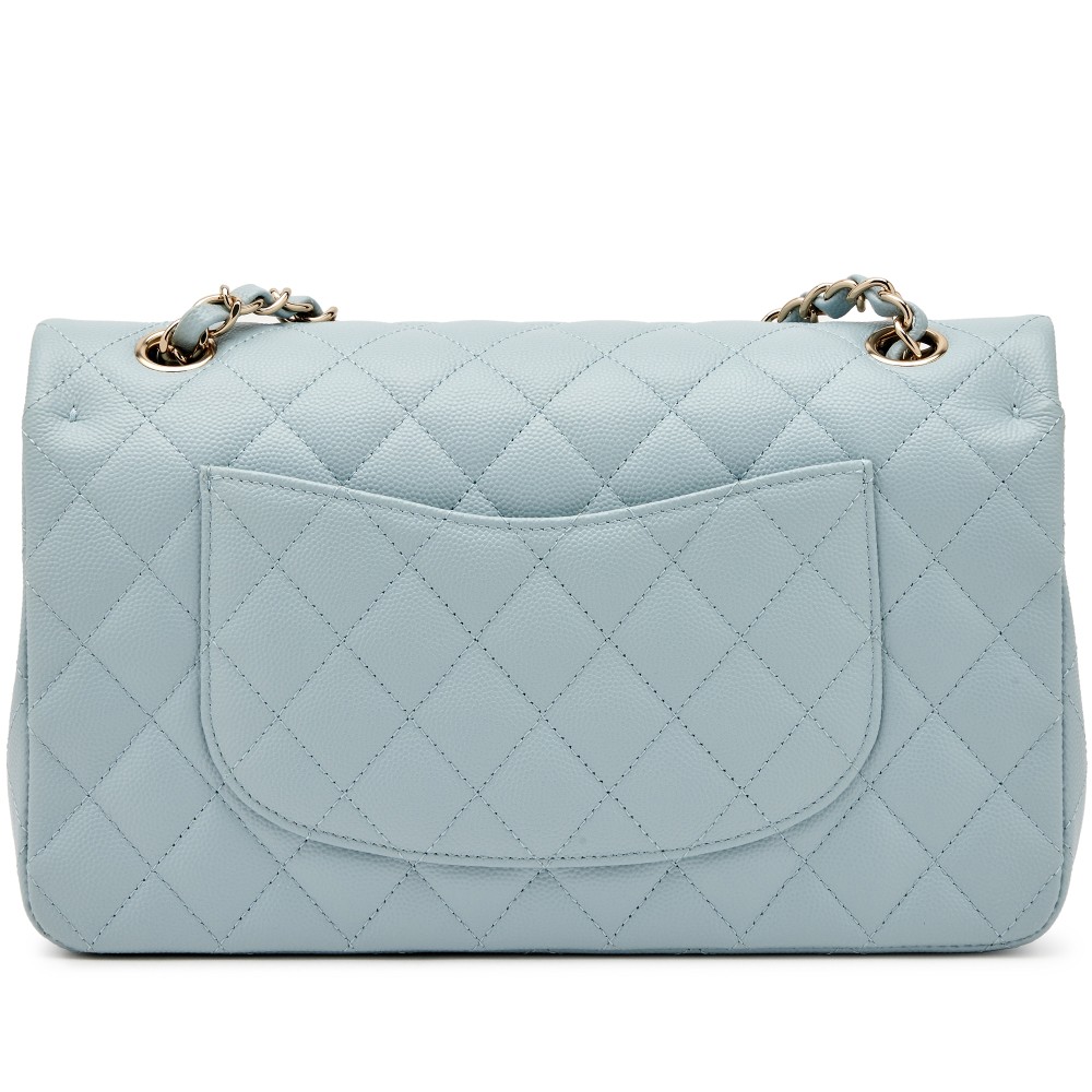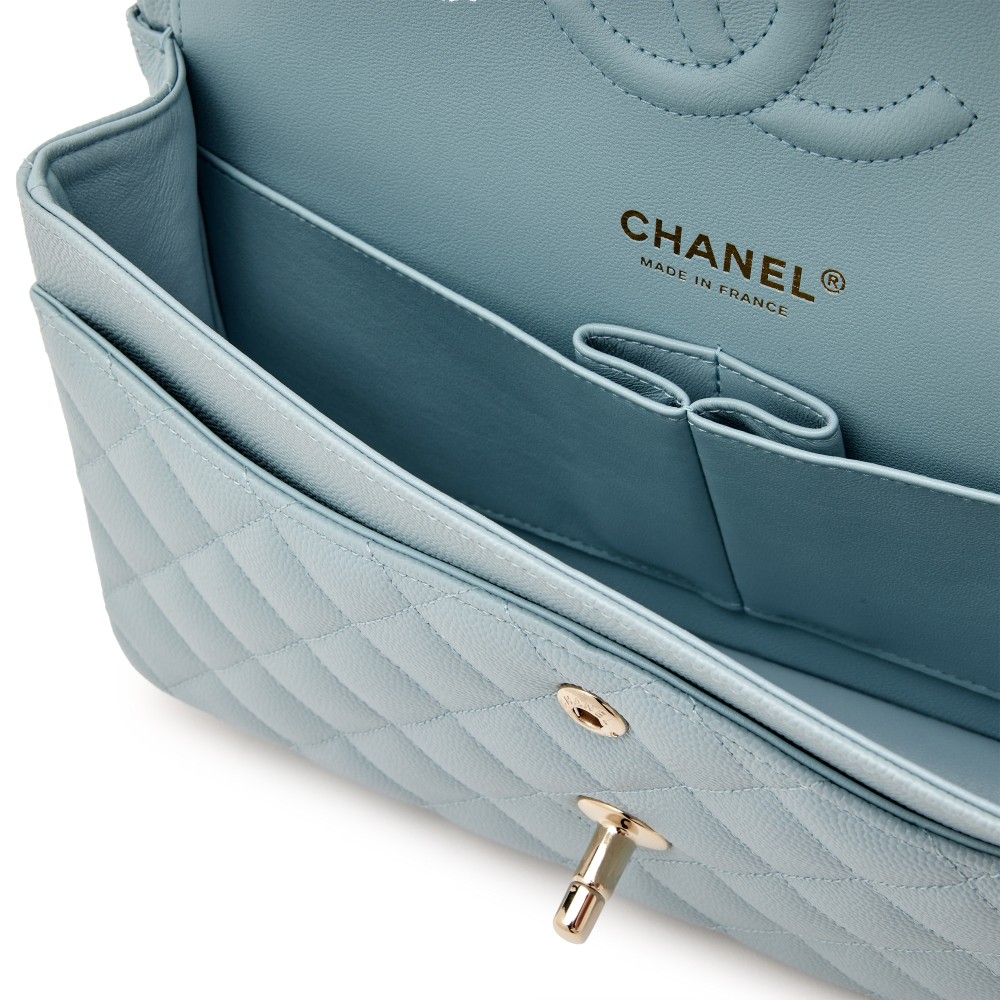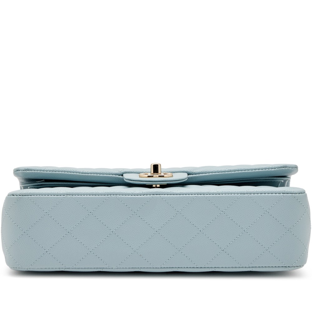 Chanel Light Blue Quilted Caviar Medium Classic Double Flap Light Gold Hardware, 2022