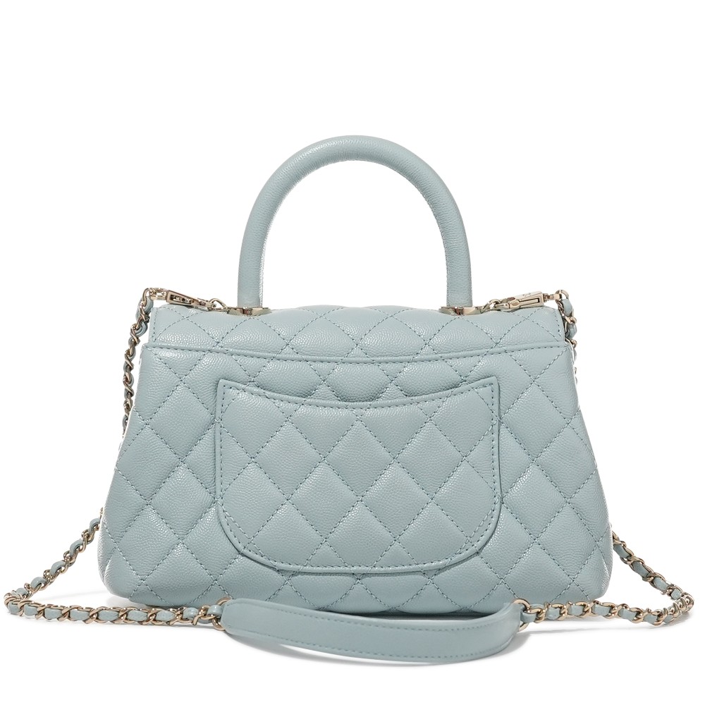 Chanel Light Blue Quilted Caviar Small Coco Top Handle Pale Gold Hardware, 2022