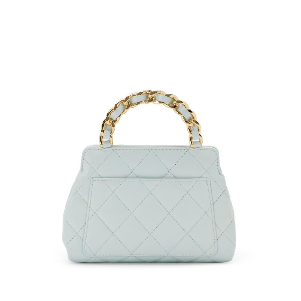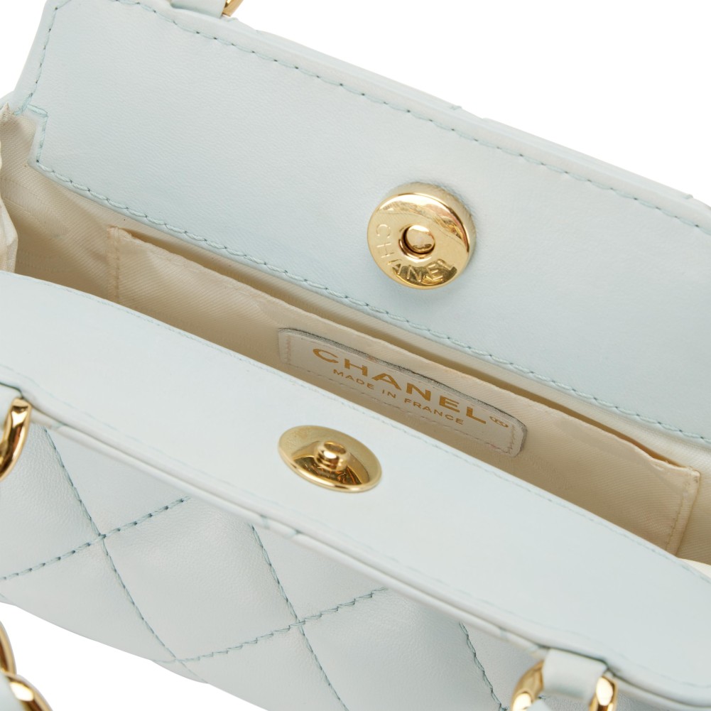 Chanel Light Blue Quilted Lambskin Chain Top Handle CC Gold Hardware, 2004