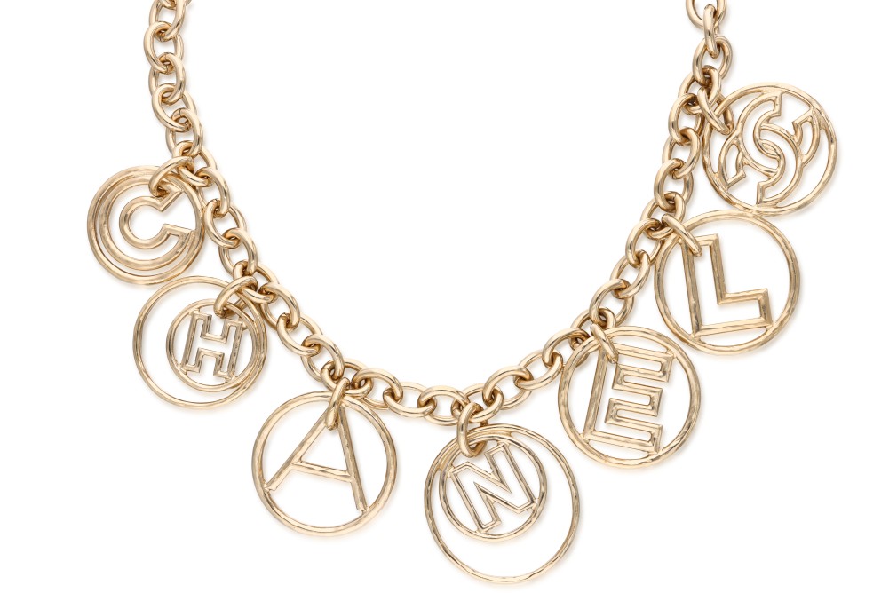 Chanel Light Gold Cuba Hoop Logo Letter Charm Necklace, 2017