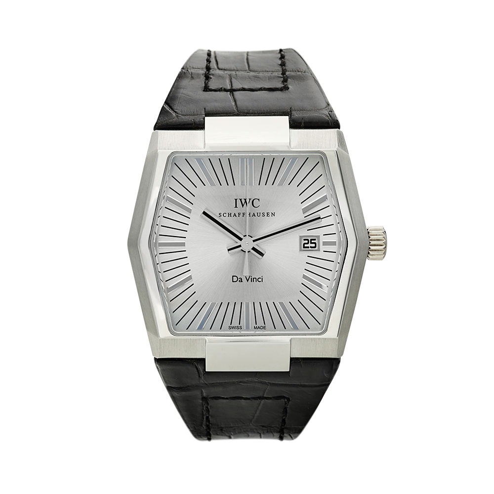 IWC was founded in Schaffhausen, Switzerland 1868. The IWC displayed today is the Da Vinci is in platinum on a black strap. Accompanied by the presentation box and IWC guarantee.