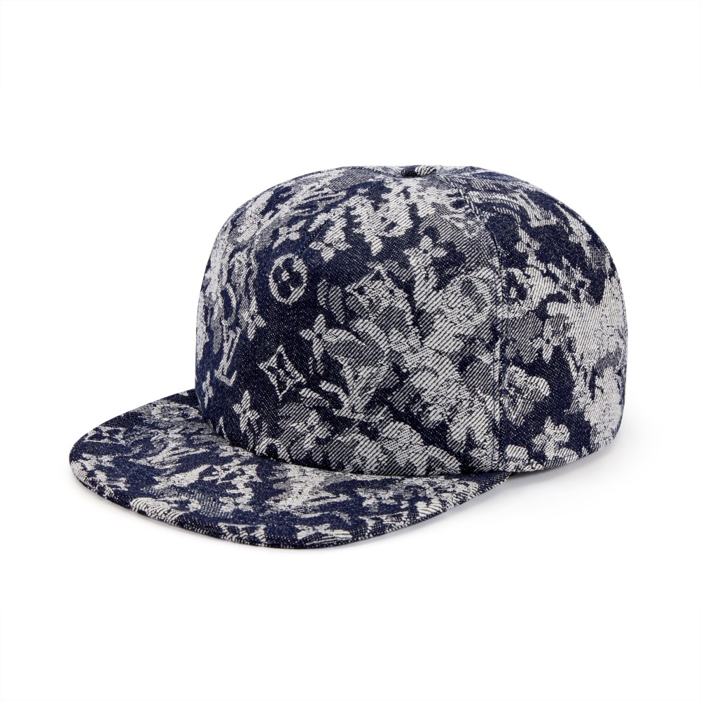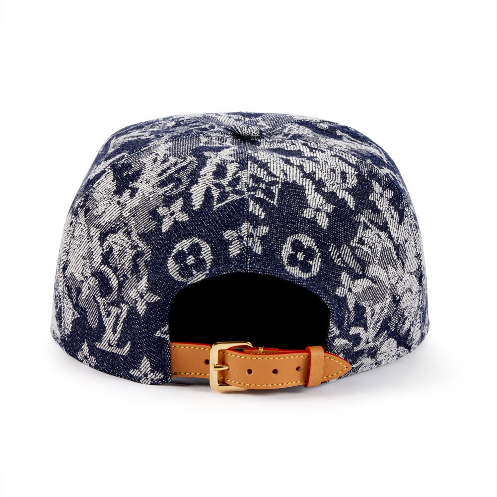 The Monogram Tapestry Cap debuted at the Men’s Pre Spring 2021 collection. The cap features a floral tapestry with an allover print LV Monogram pattern on a blue cotton woven canvas upper. The Monogram Tapestry Cap adjusts using a leather strap with a Louis Vuitton logo-engraved metal buckle. The cap is lined in satin.