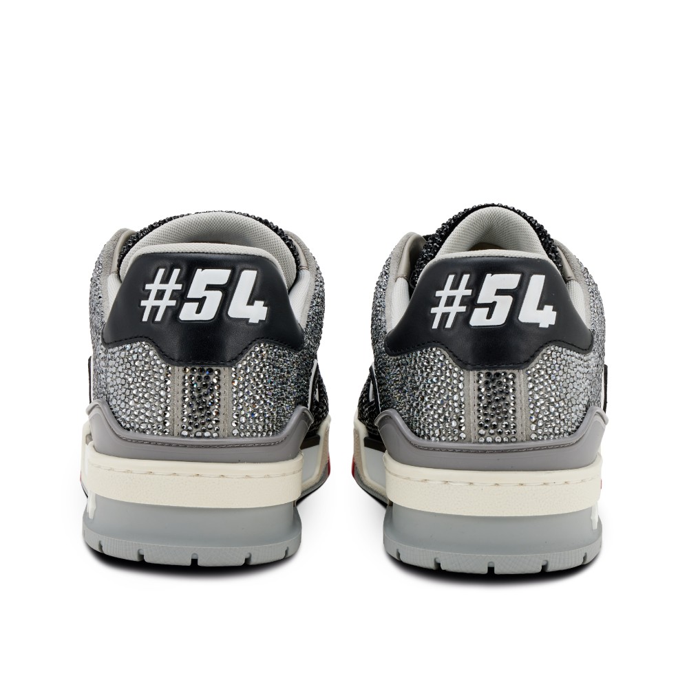 The Louis Vuitton “LV Trainer” was first presented during Virgil Abloh?s debut Spring-Summer 2019 show, and has become a staple menswear sneaker. The iconic design was inspired by vintage basketball sneakers. This rendition features sparkling rhinestones and is signed with the LV initials on the tongue and side. The #54 logo at the back heel represents the year Louis Vuitton was founded, 1854.