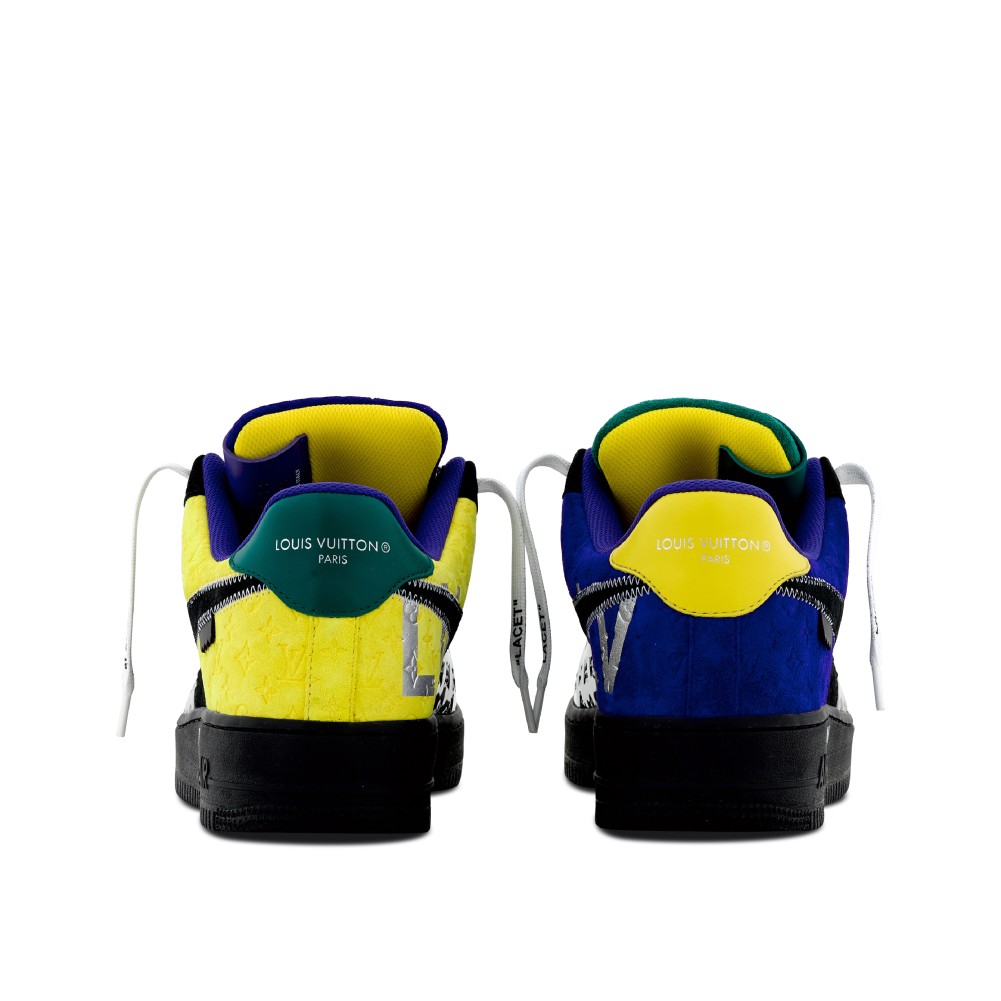 In total, Virgil Abloh designed 47 bespoke pairs of the Nike ?Air Force 1? for the Louis Vuitton Spring-Summer 2022 show in collaboration with Nike. To distinguish them from the original Nike Air Force 1, the sneakers were made with materials employed in Abloh?s Louis Vuitton men?s collections and styled with his signature quotation marks, echoing the written graphics Abloh used to adorn the shoes. Every pair was made by Louis Vuitton in Fiesso d?Artico, marking the first time the AF1 model was crafted outside of a Nike factory.