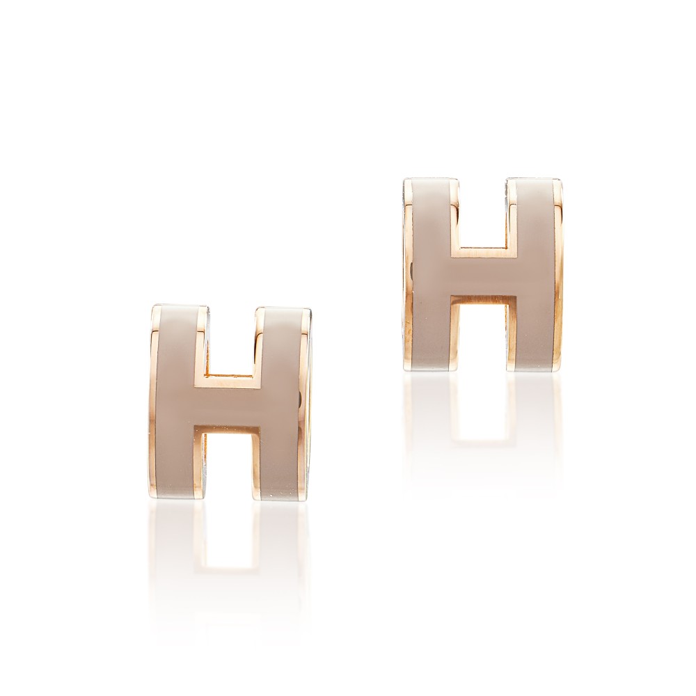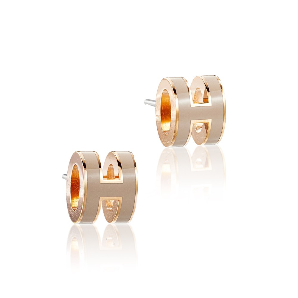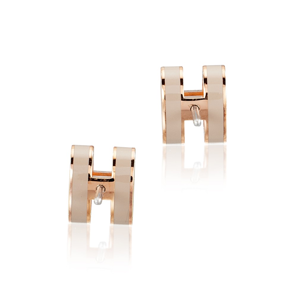 Herm?s Marron Glace Lacquer Mini Pop H Earrings Rose Gold Hardware