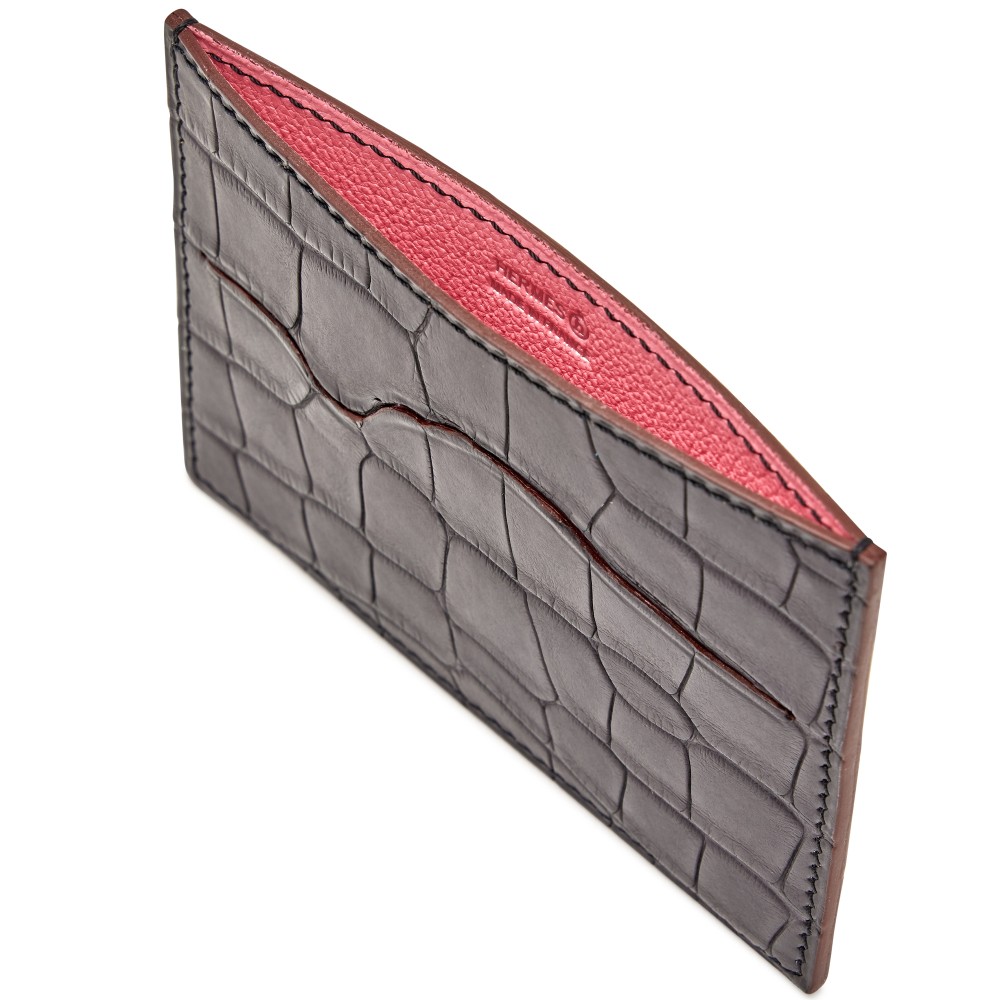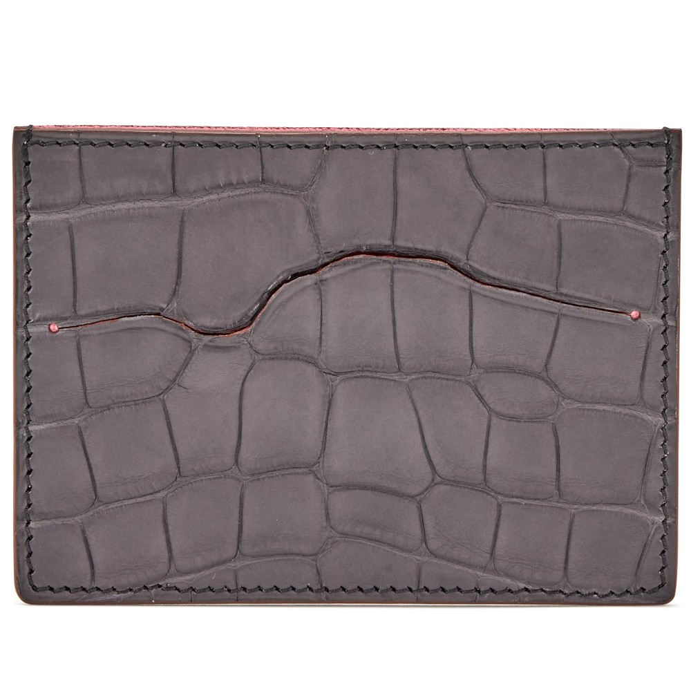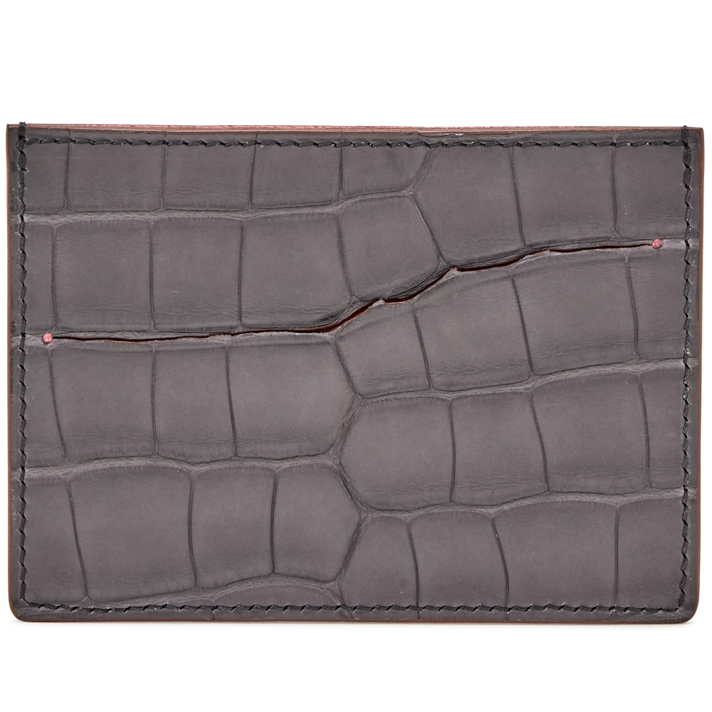 Herm?s Matte Black Alligator and Rose Confetti Petit H Card Holder