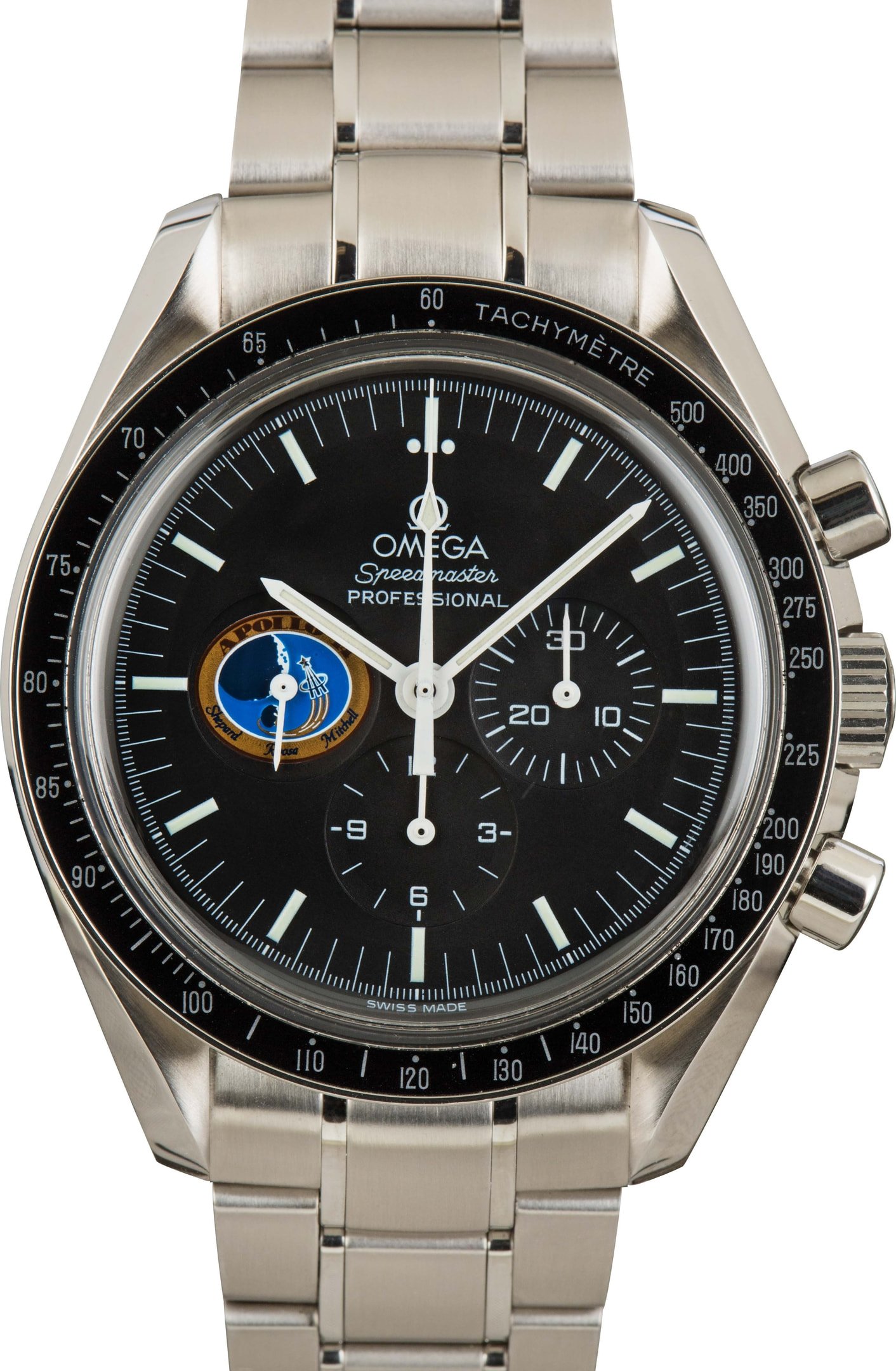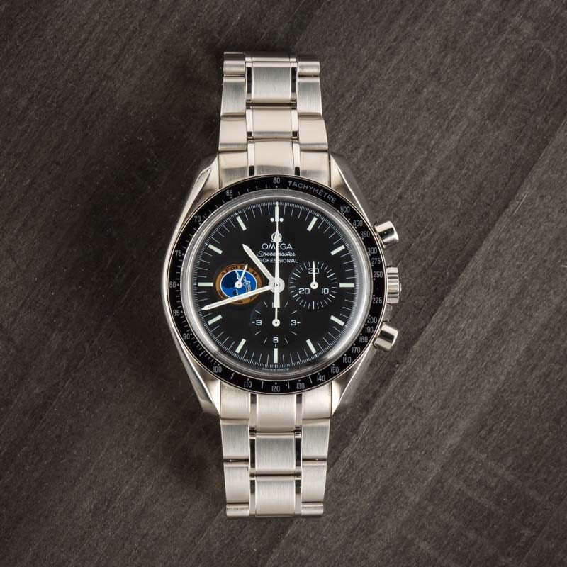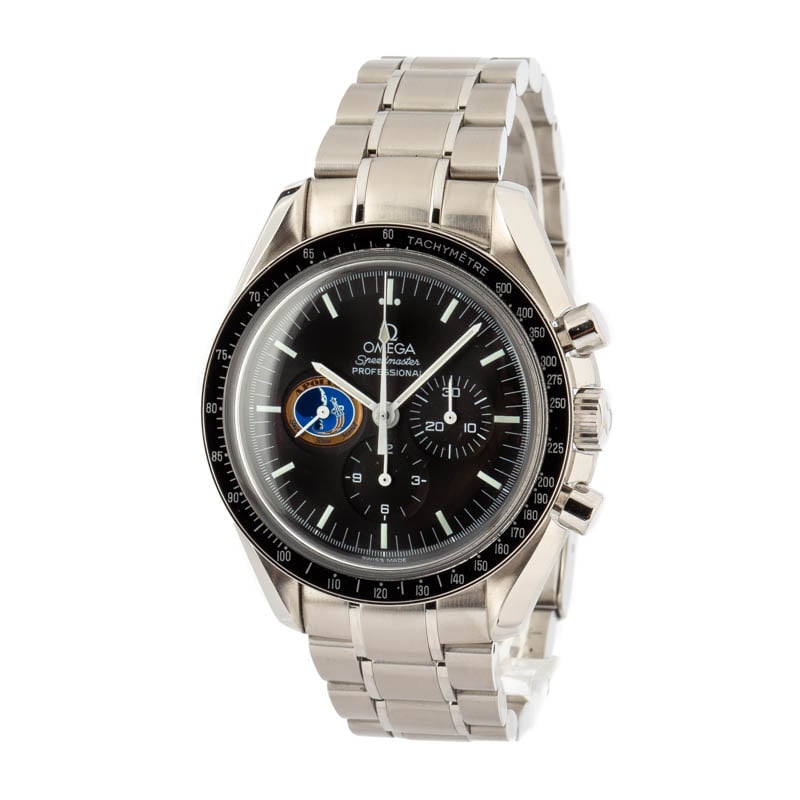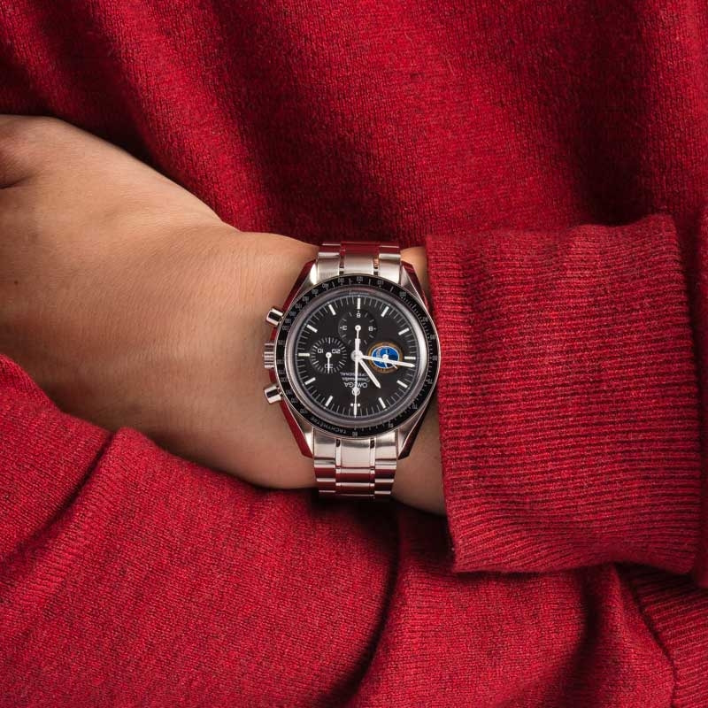 Pre-owned Omega Speedmaster Professional Missions Apollo 14 ref 3597.17.00 (1997 – 1998) was developed to pay tribute to the 1971 Apollo 14 mission, featuring the mission patch on the sub-dial at 9 o’clock. Omega produced many mission-dedicated Speedys during the 1990s. However, we don’t see this model often, which many believe was only sold in quantities of 150. It’s also significant because Apollo 14 astronaut Alan Shepard wore a Speedmaster 145.012 during the third lunar landing. This 1990s model has all the features many passionate collectors are searching for in a traditional Moon Watch, including a hand-wound movement, black tachymeter bezel, and stainless steel finish. At the same time, it also sports a tougher scratch-resistant sapphire crystal. We envy anyone lucky enough to add this prized collector’s item to their watch box.