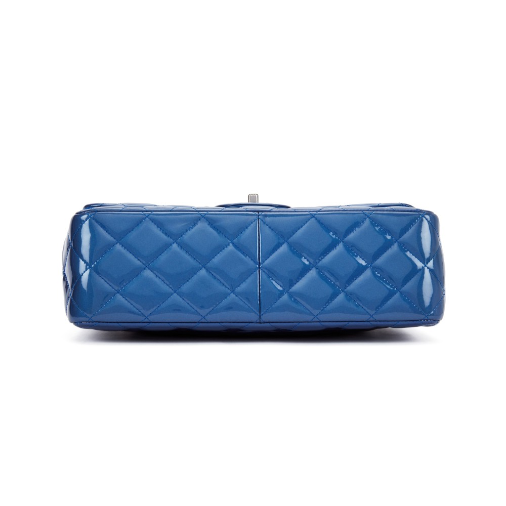 Chanel Metallic Blue Quilted Patent Jumbo Classic Double Flap Ruthenium Hardware, 2012-2013