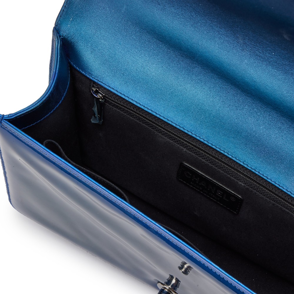 Chanel Metallic Blue Quilted Patent Leather New Medium Boy Bag Silver Hardware, 2014