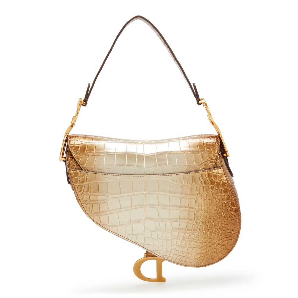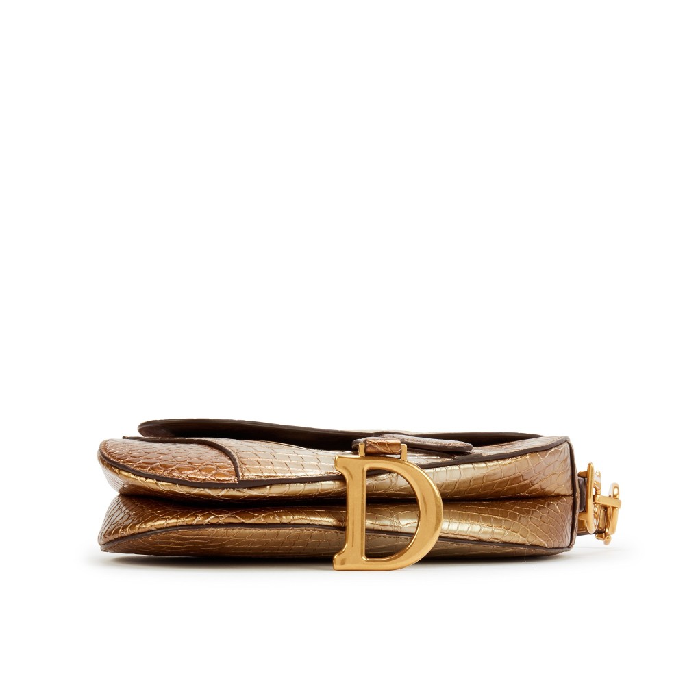 Christian Dior Metallic Gold Gradient Shiny Alligator Saddle Bag Gold Hardware, 2020