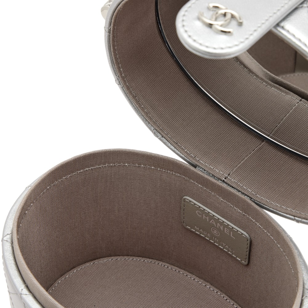 Chanel Metallic Silver Round Vanity Clutch with Chain Silver Hardware, 2020