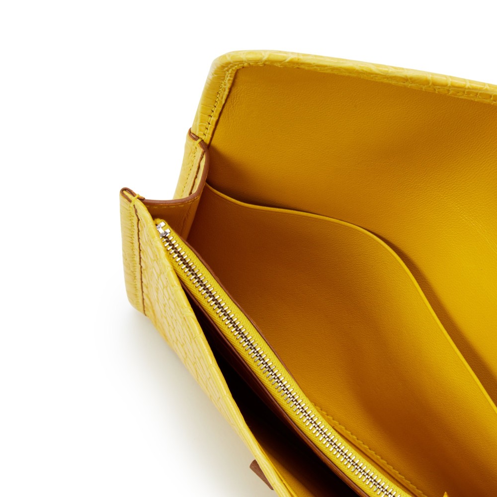 Herm?s Mimosa Matte Alligator Jige Duo Wallet Palladium Hardware, 2014