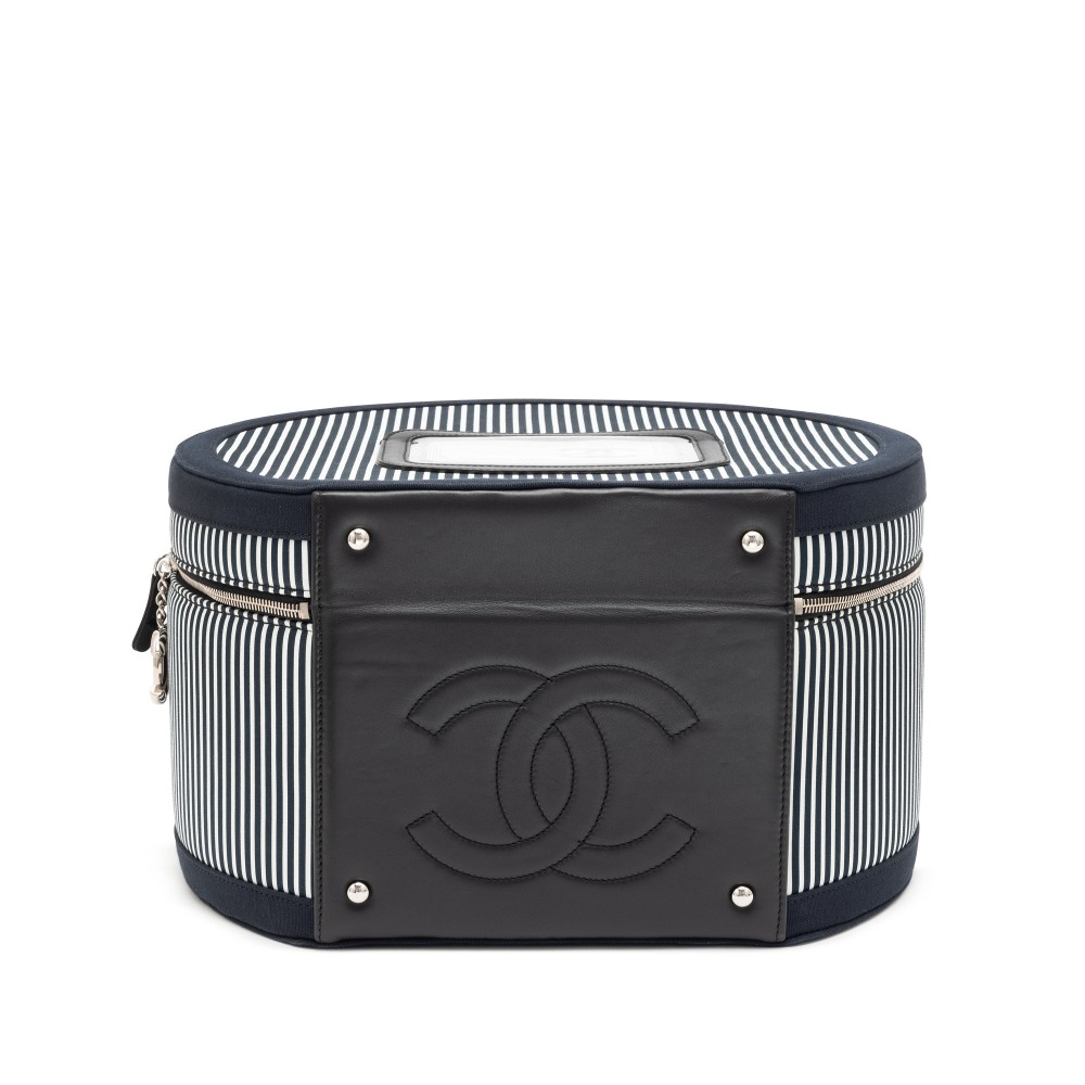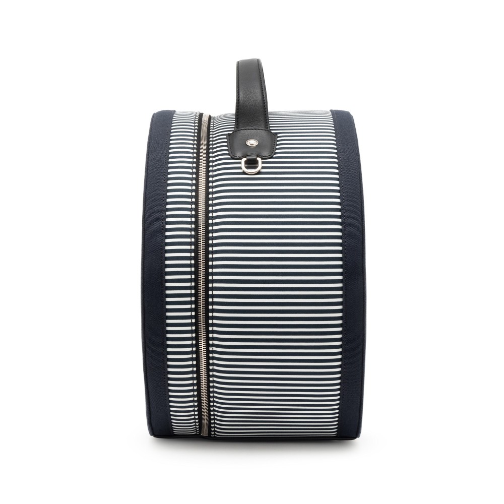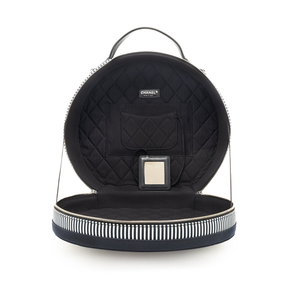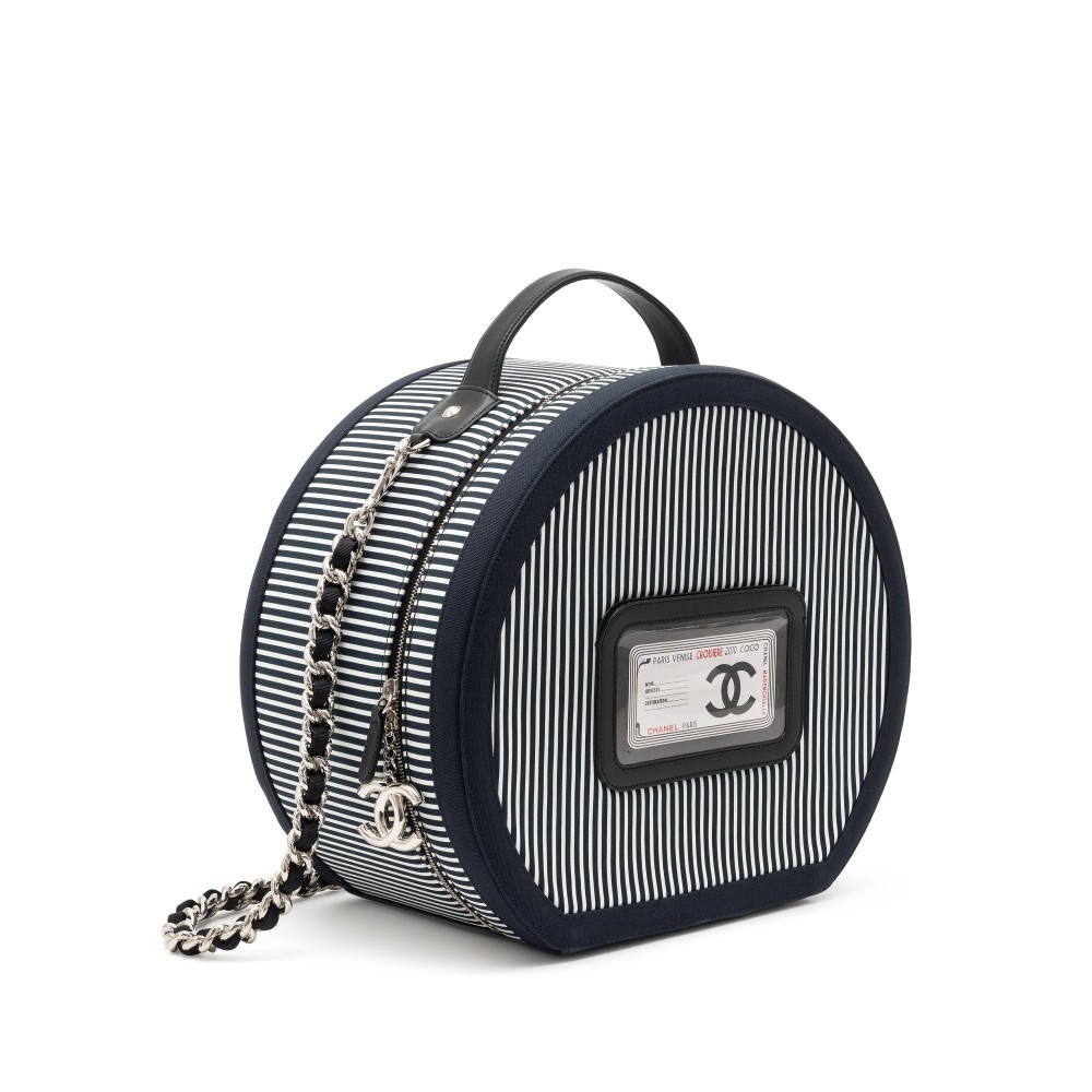 Chanel Navy and White Rialto Striped Textile Hat Box Silver Hardware, 2010