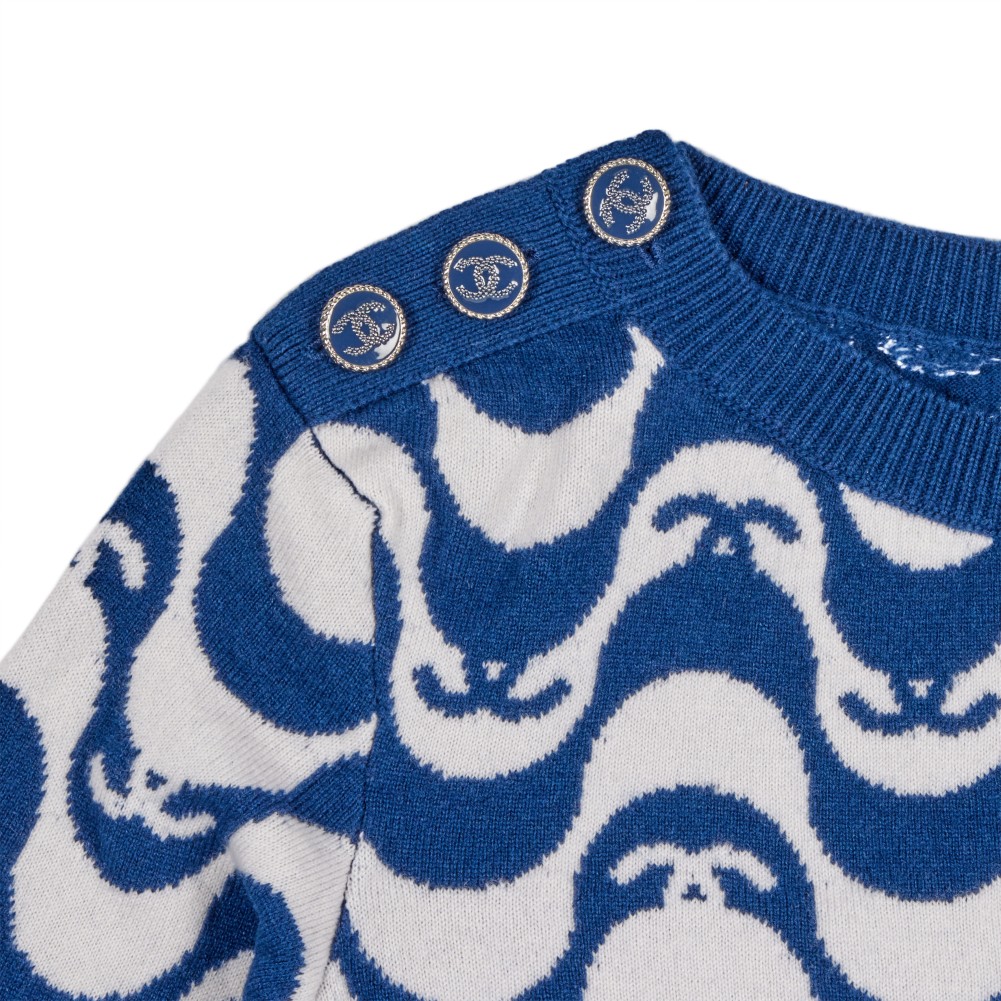 Chanel Navy Wavey Striped Cashmere Sweater, 2021