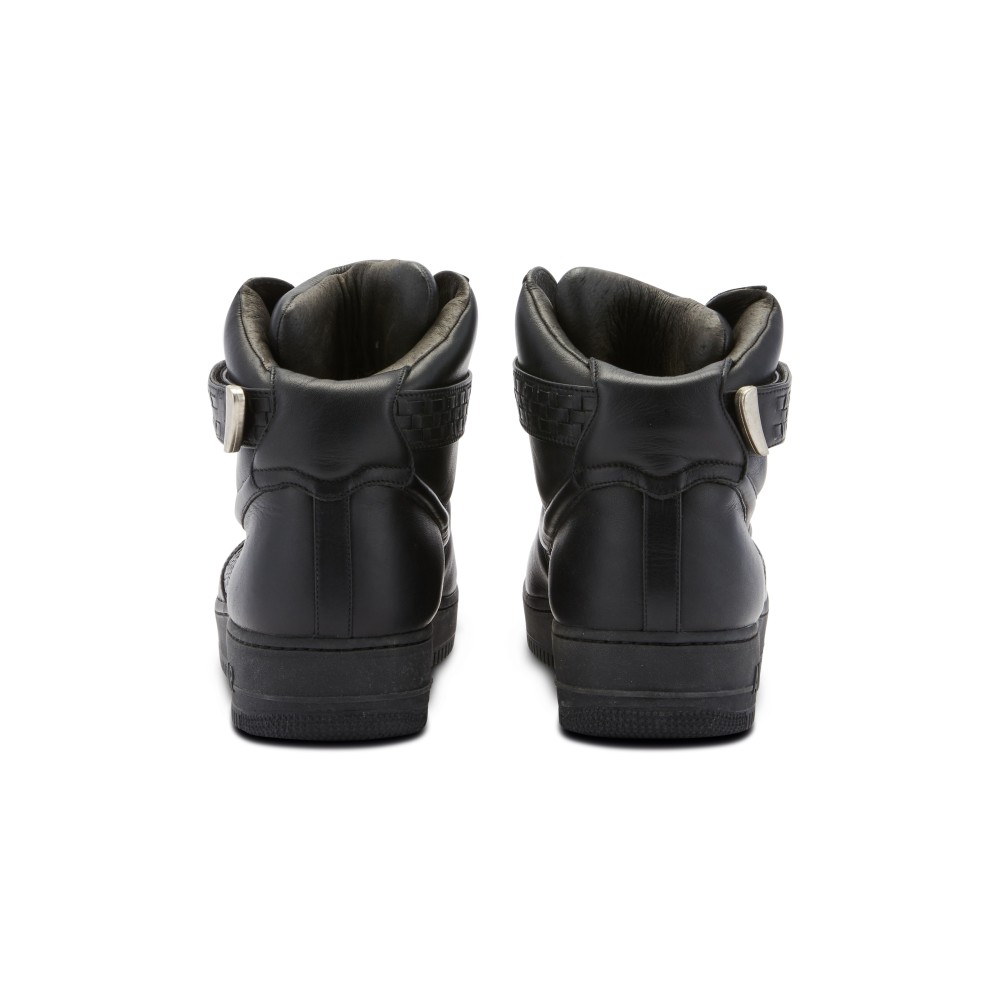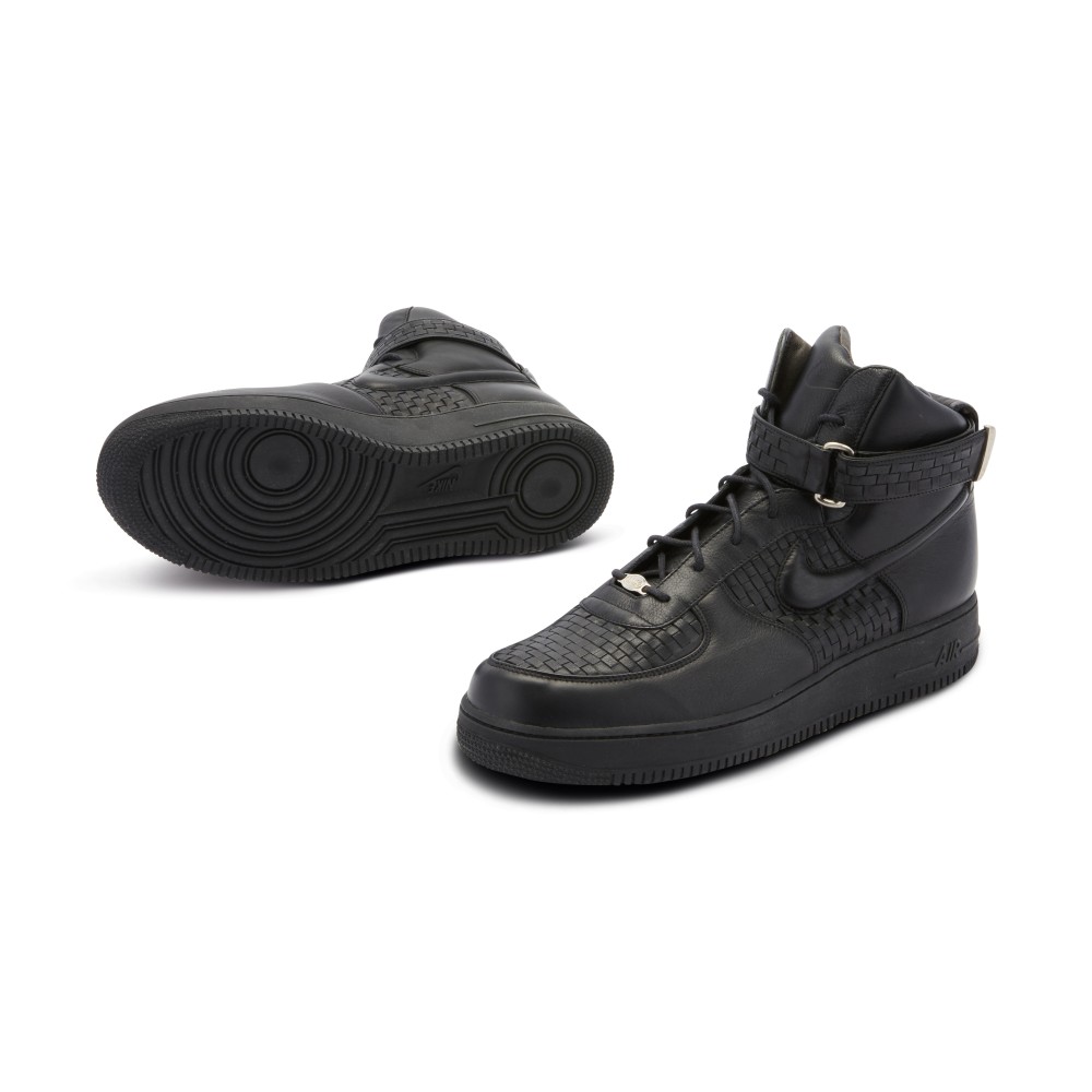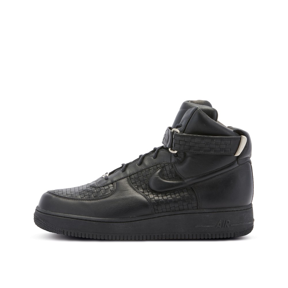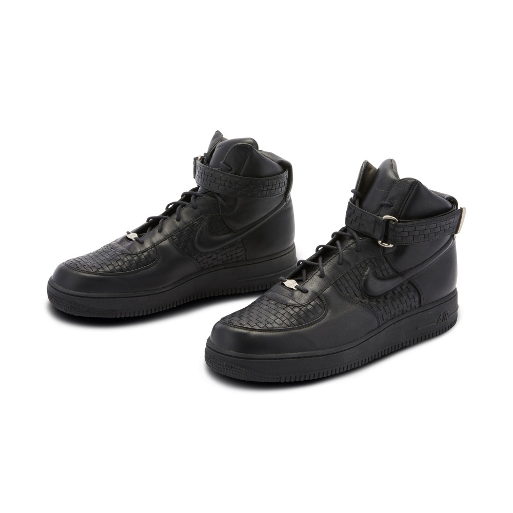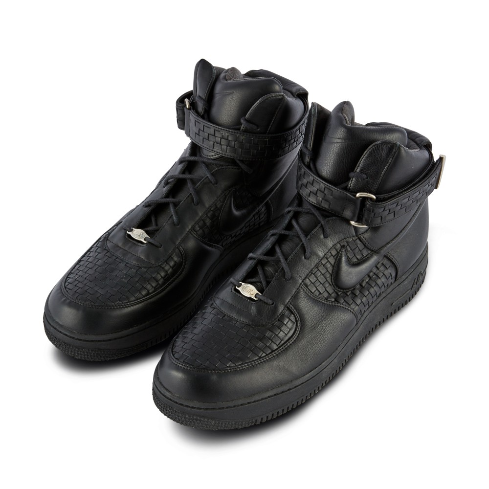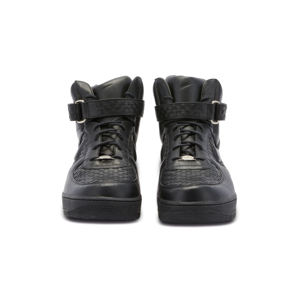 Inspired by trends popular in New York during the late 80s, this exclusive pair of the all-black 2003 Air Force 1 High Lux were designed with the urban climate of the city in mind. The pair features the signature Lux ?Made in Italy? tag which both elevates the design and adds foreign appeal. The uppers are intricately designed with a woven pattern and are completed with silver ankle buckles that bring a sense of luxury to the sneaker.