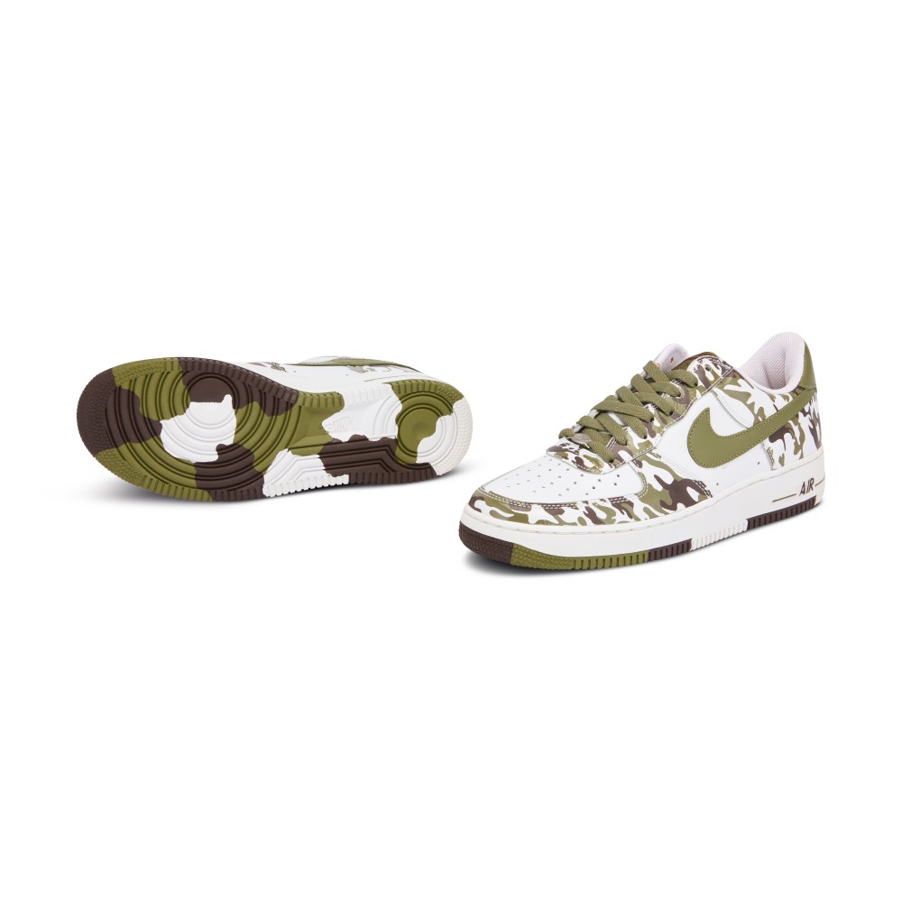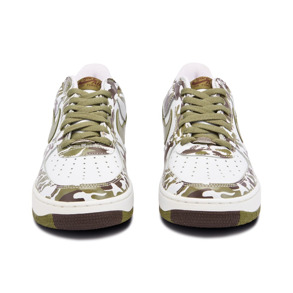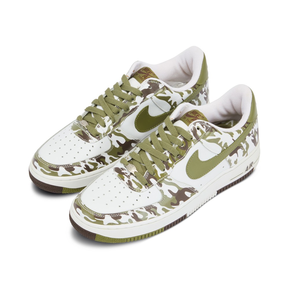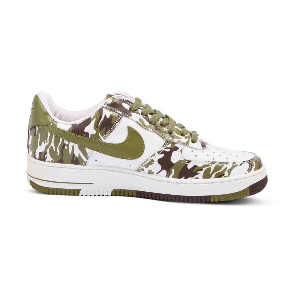 The Air Force 1 has been updated with many versions of camo graphics over the years. This model, released in 2004, features a white leather upper with Palm Green and Baroque Brown camo pattern. The classic look is completed with a clean white midsole and repeated camo outsole.
