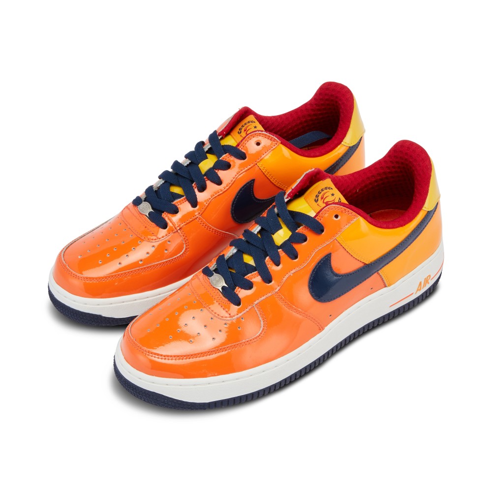 This pair of Air Force 1 sneakers was specially created for the 2006 NBA All-Star Game held in Houston, Texas. Originally released in 1982, the Air Force 1 is named after the presidential aircraft. Designed by Bruce Kilgore, it was the first basketball shoe to feature revolutionary air pocket technology. Today it is one of Nike?s most iconic, bestselling sneakers.