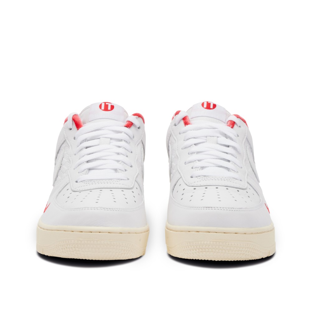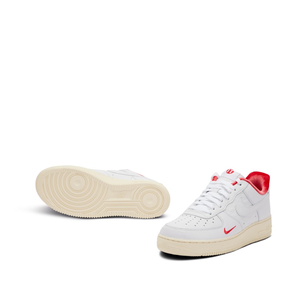 To honor the opening of Kith’s first flagship in Shibuya, Japan in 2020, the brand worked with Nike to create a collaborative Air Force 1. Drawing inspiration from the Japanese flag, the sneakers are finished in an all-white premium leather upper with accents of red in the velvet toplining and an additional stitched mini Nike Swoosh. The standard Nike tongue tag is replaced with an embroidered flag and Kith logo. The sole of the sneaker is in an off-white. The center paneling is creatively debossed with ?Kith Air? logos, a play on if the collaboration was a brand. The pair also comes with extra laces with gold aglets, as well as an additional gold deubr?. These sneakers were exclusive to the Tokyo store with limited quantities available.