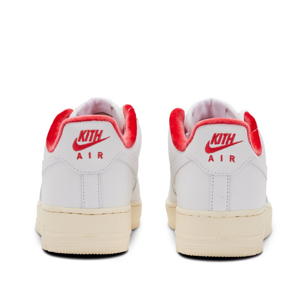 To honor the opening of Kith’s first flagship in Shibuya, Japan in 2020, the brand worked with Nike to create a collaborative Air Force 1. Drawing inspiration from the Japanese flag, the sneakers are finished in an all-white premium leather upper with accents of red in the velvet toplining and an additional stitched mini Nike Swoosh. The standard Nike tongue tag is replaced with an embroidered flag and Kith logo. The sole of the sneaker is in an off-white. The center paneling is creatively debossed with ?Kith Air? logos, a play on if the collaboration was a brand. The pair also comes with extra laces with gold aglets, as well as an additional gold deubr?. These sneakers were exclusive to the Tokyo store with limited quantities available.
