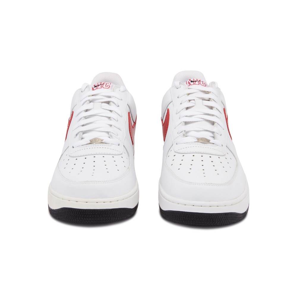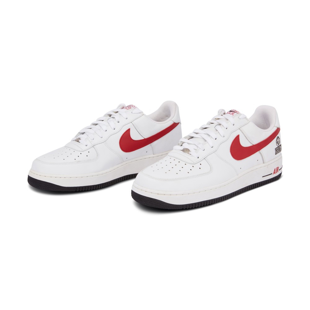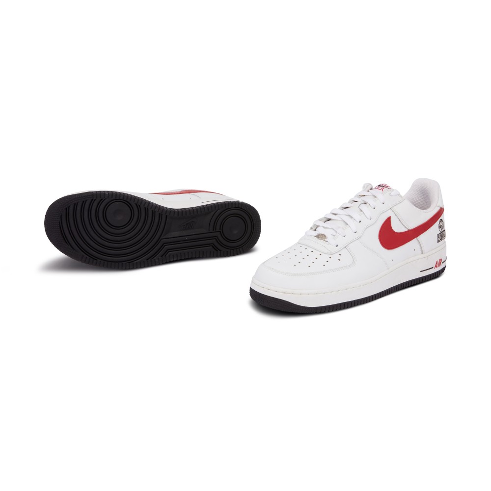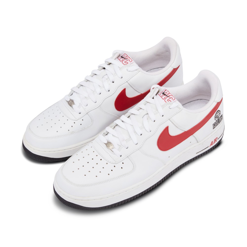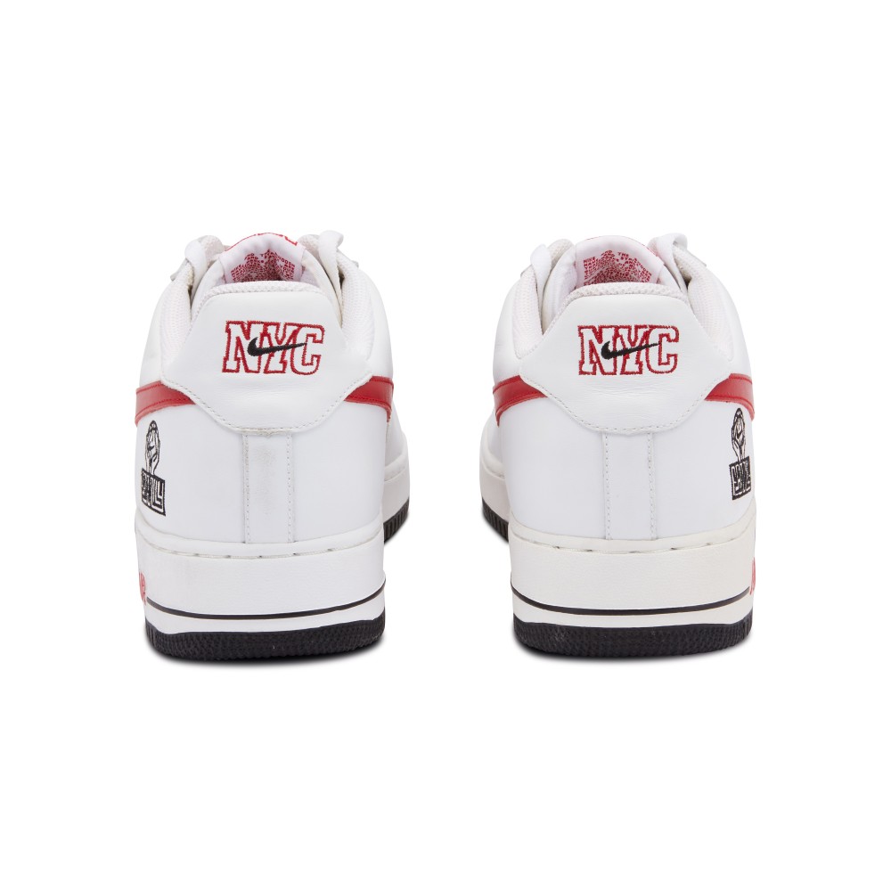 The Nike Air Force 1 Low NYC Family Promo from 2005 is a rare find. Made exclusively for basketball employees, the shoe features a white leather upper with perforated toe box. The white shoe is accented by red NYC stitching on the tongue and heel tab and a red Nike Swoosh. The outside heel features hands holding a basketball with the word “Family”. Originally released in 1982, the Air Force 1 is named after the presidential aircraft. Designed by Bruce Kilgore, it was the first basketball shoe to feature revolutionary air pocket technology. Today it is one of Nike?s most iconic, best-selling sneakers.