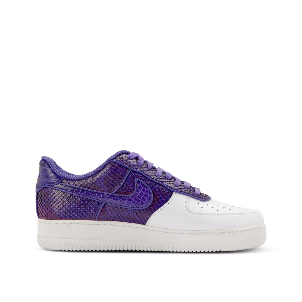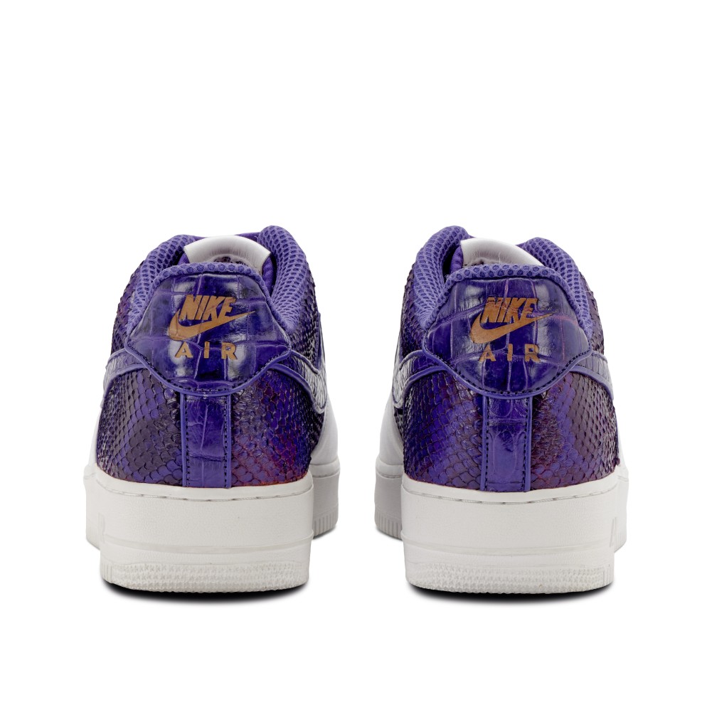 Completed in the classic Air Force silhouette, the pair features an embossed purple upper with a matching Swoosh, tongue and heel tab, and 1 Night Only branding on the tongue tag.