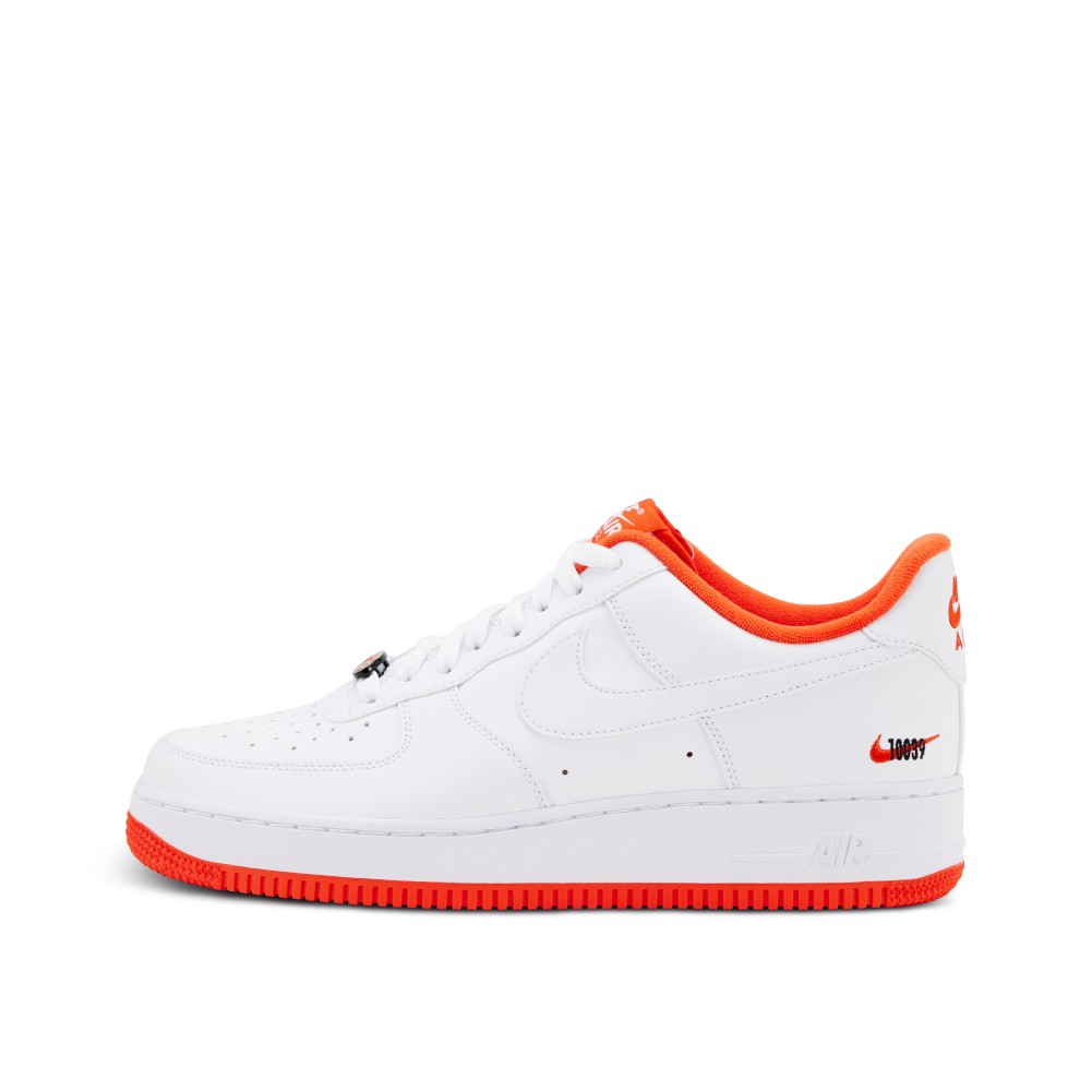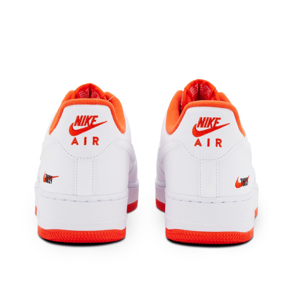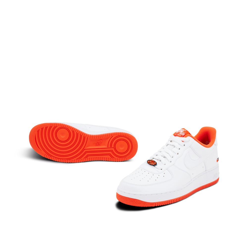 This Air Force 1 Low Rucker Park Sample pays homage to the Harlem outdoor basketball court where icons like Kobe Bryant, Julius Erving and Kareem Abdul-Jabbar have played. The upper is finished in a white leather with accents of orange on the sockliner, outsole and heel logo. A mini orange Swoosh is stitched on both lateral heels with black ?10039? embroidery, a reference to the Park?s zip code. A mini basketball emblem replaces the usual AF1 deubre and the insoles are designed with a basketball court outline. This sample pair still has the sample hang tag attached and is sample stamped on the sockliner.